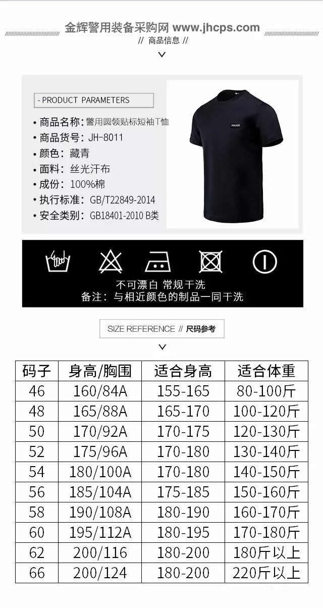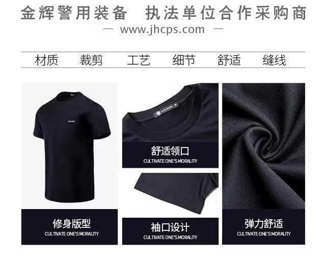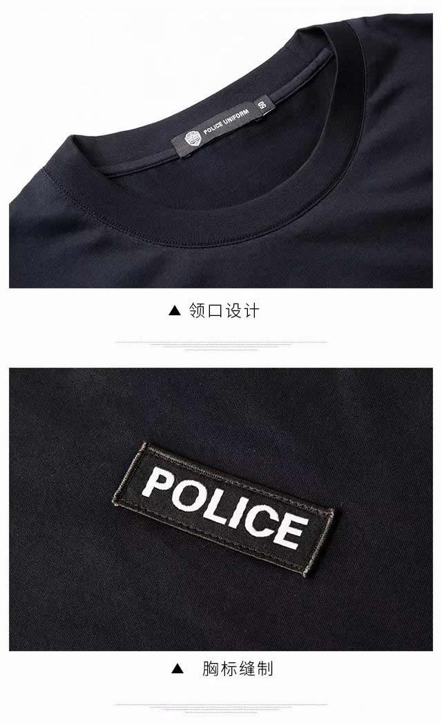 新款(kuǎn)警服(fú)圓領貼標短袖T恤 正版配發(fā)公安警用T恤(xù)衫 2018新標警察製服短袖T恤