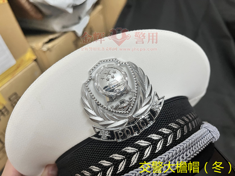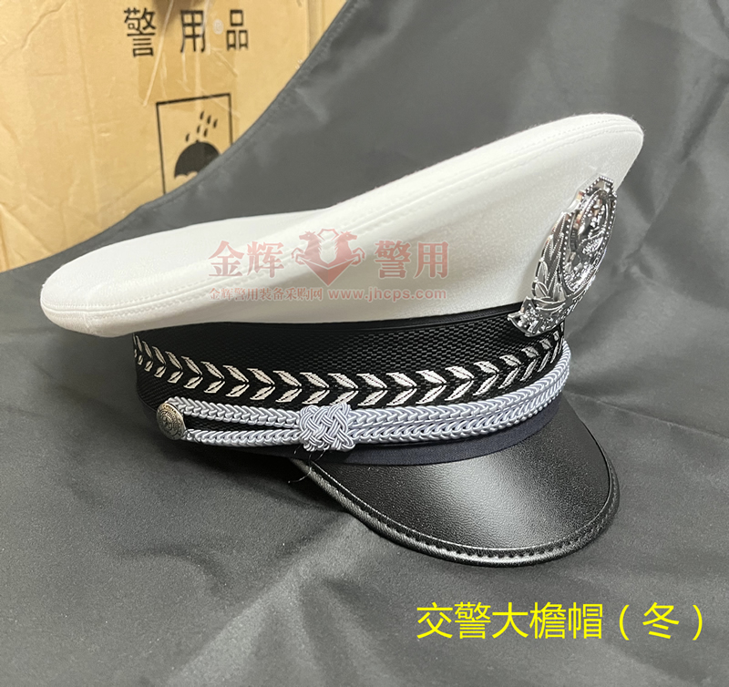 交警冬執勤大簷帽 白色交通警察冬大蓋帽 正品公安交警帽 新款白色警帽