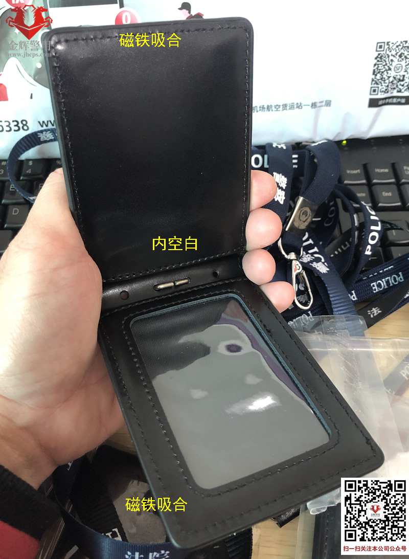 刑警掛式皮(pí)套參數:皮(pí)麵為牛皮二層皮,透明膜為PVC,加強金屬掛扣設計可有效防止日常攜帶對頭部的磨損,皮質縫線工藝精致無瑕疵(cī),合金刑警標準徽章采用嵌入式固定(dìng)工藝牢固美(měi)觀,其(qí)中皮套寬度7.5厘米,高度10.5厘米1厘米,厚度內部卡片存(cún)放警察證或者身份證大小尺寸(cùn)工(gōng)作卡片(piàn),閉合處采用磁鐵(tiě)吸附,防止攜帶時候撬開。