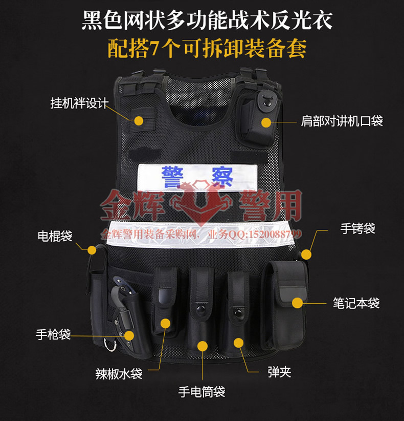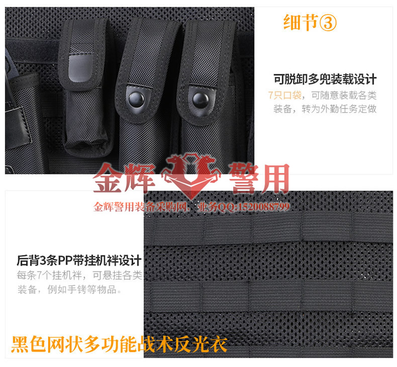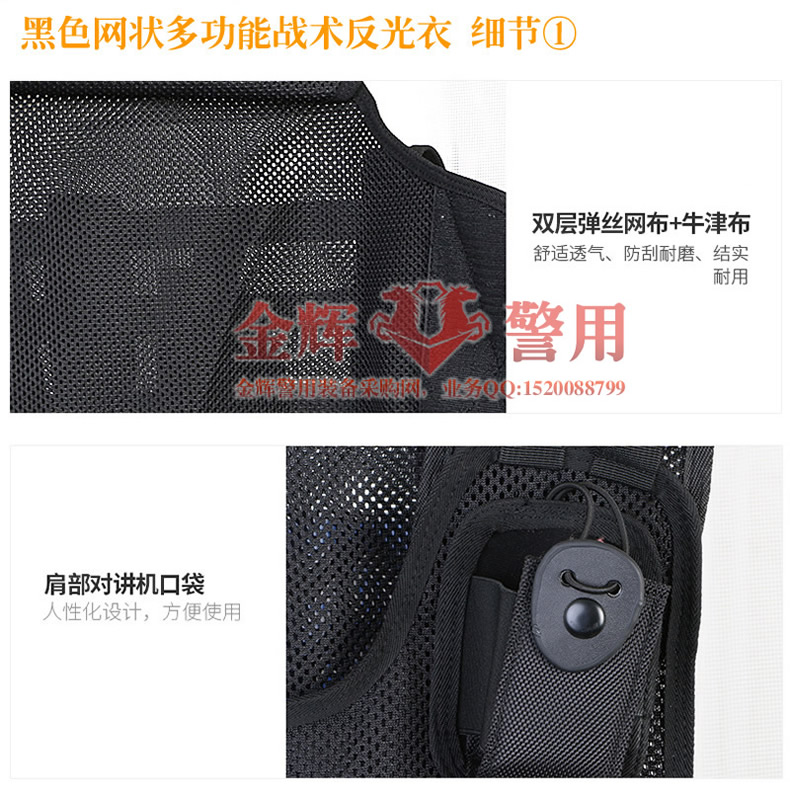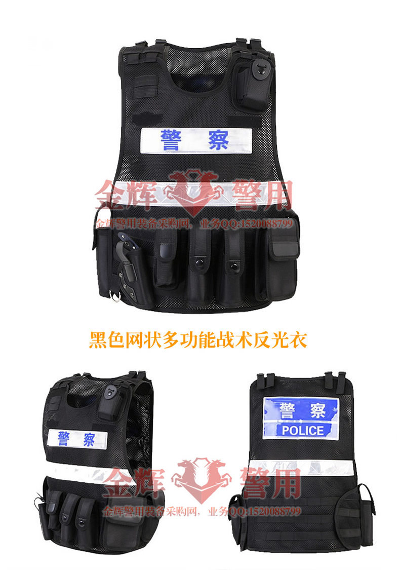 黑色網狀(zhuàng)警用多功能裝備反光衣