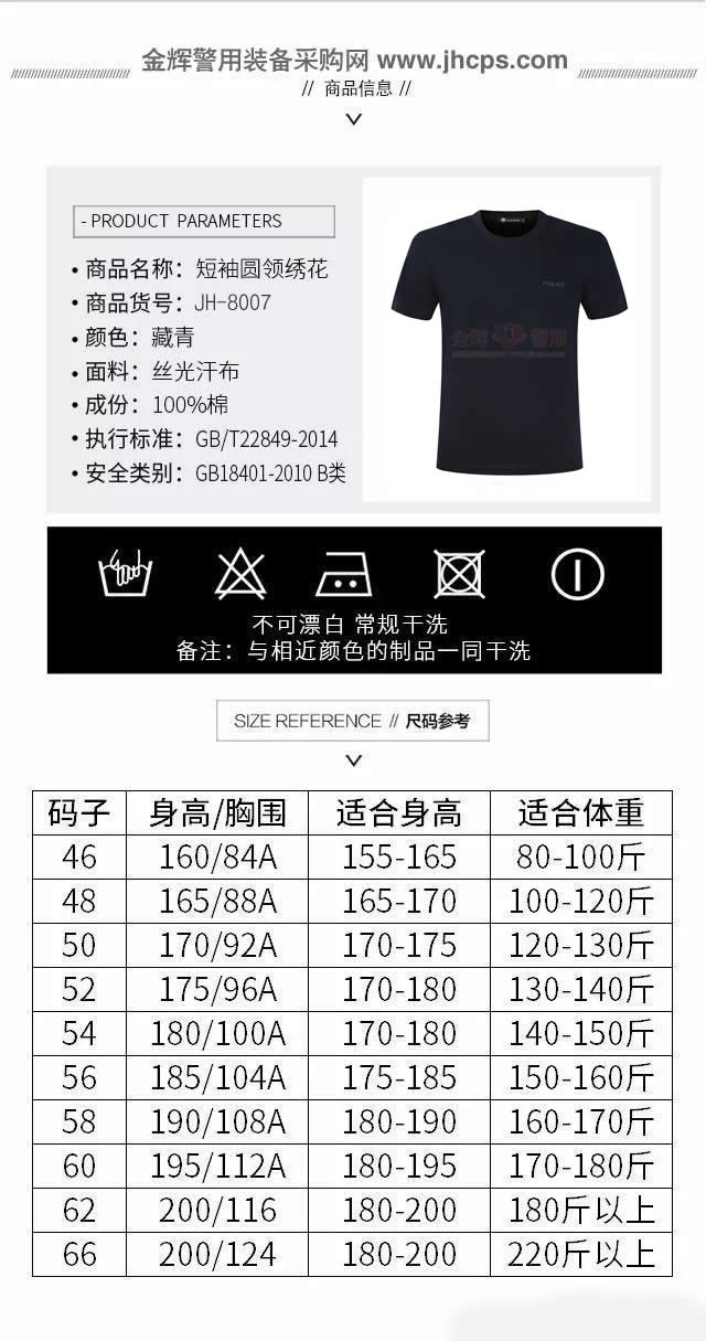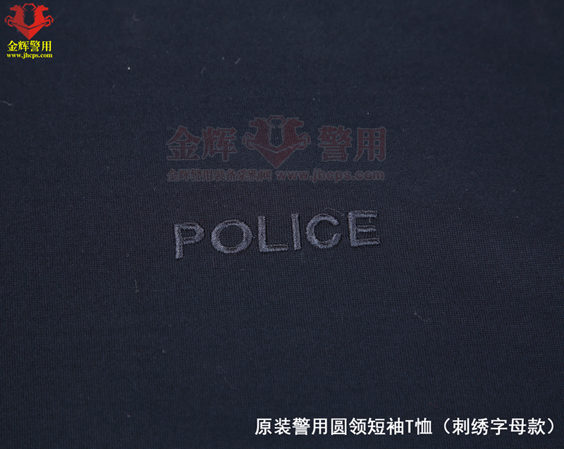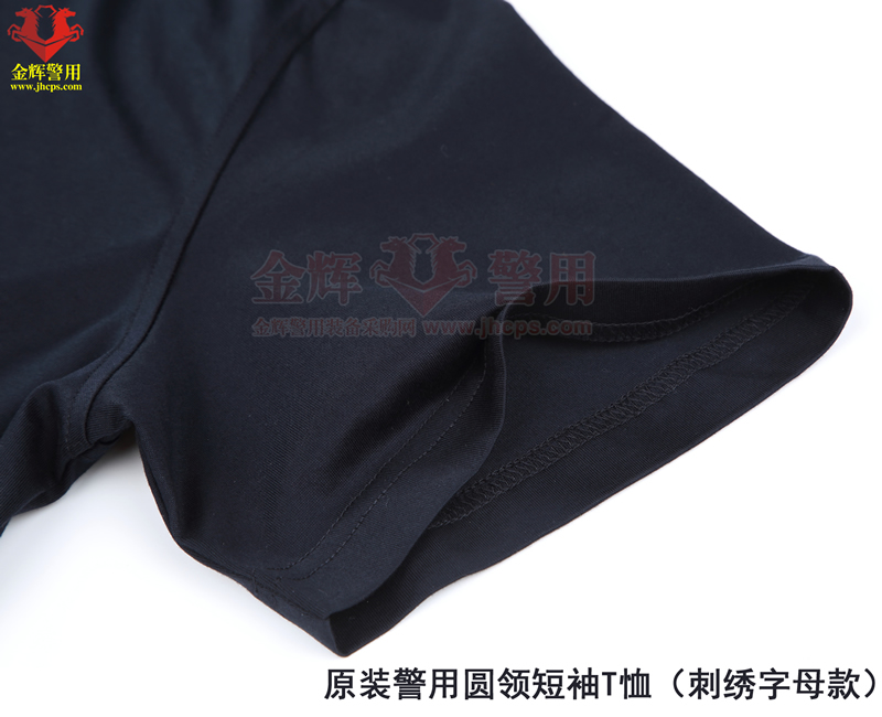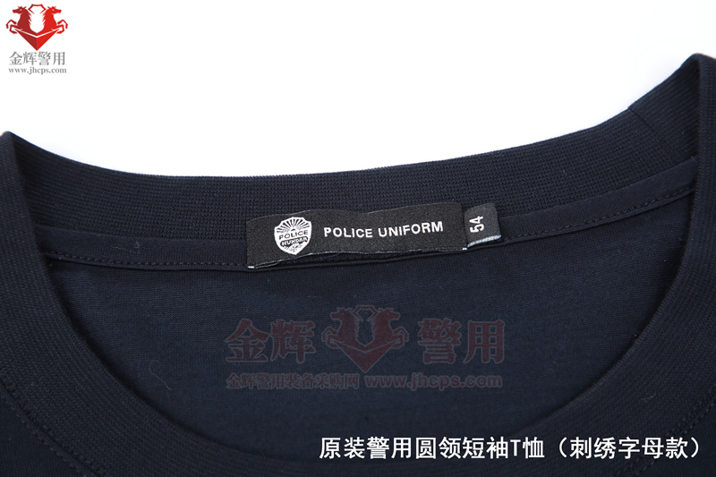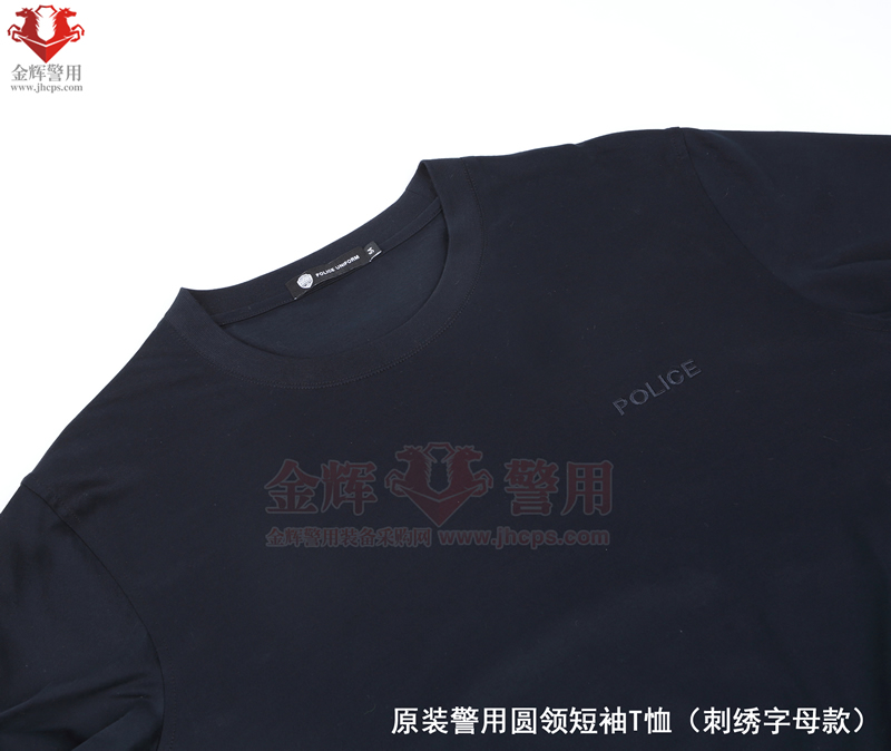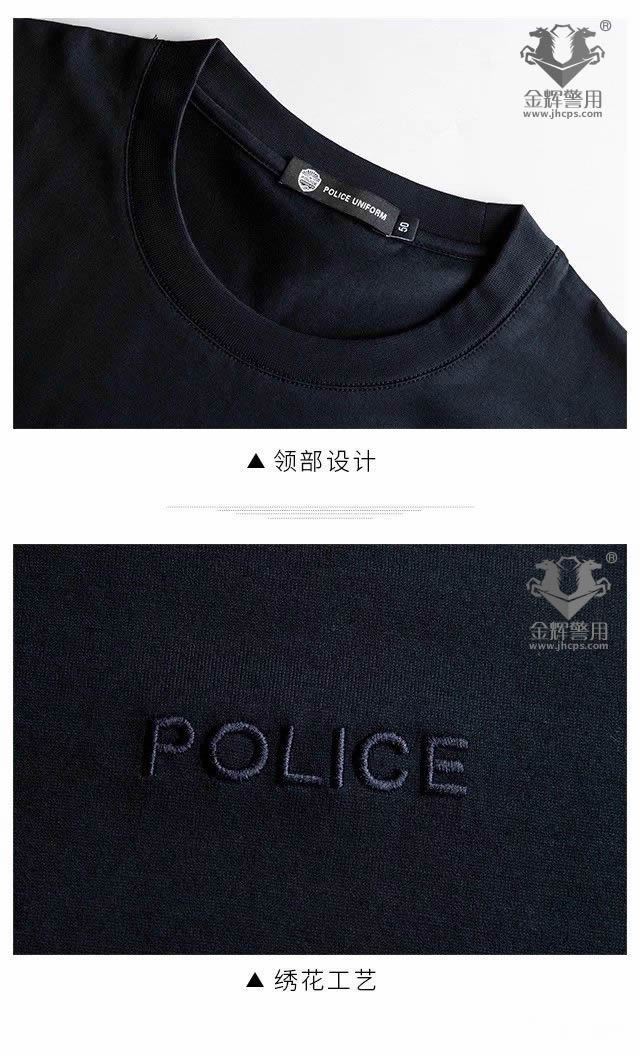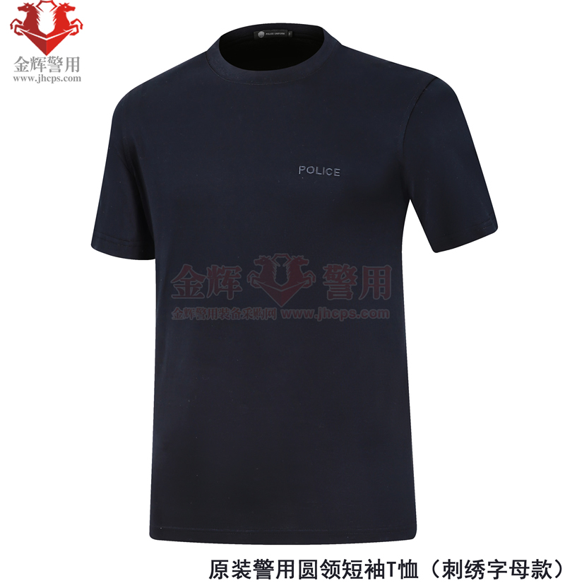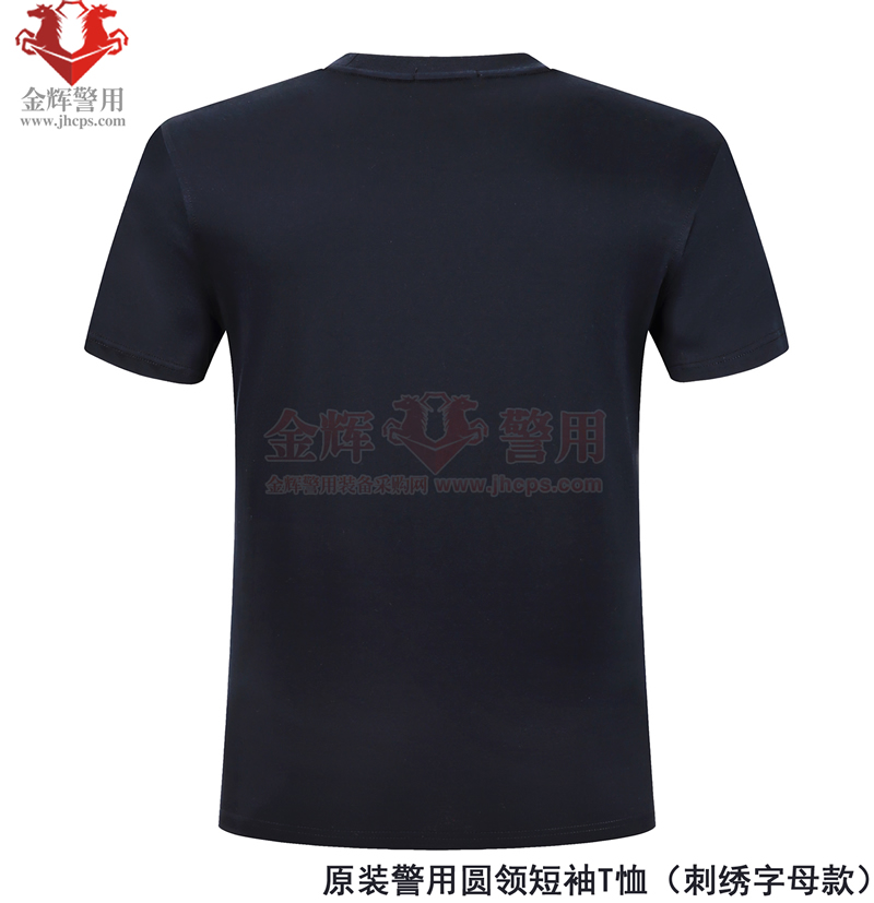 警察製式圓領短袖T恤 深色刺繡POLICE字母 公安短袖T恤衫 內部配發新式圓領純棉警用訓練T恤 夏(xià)天警服T恤
