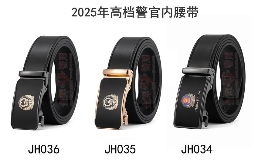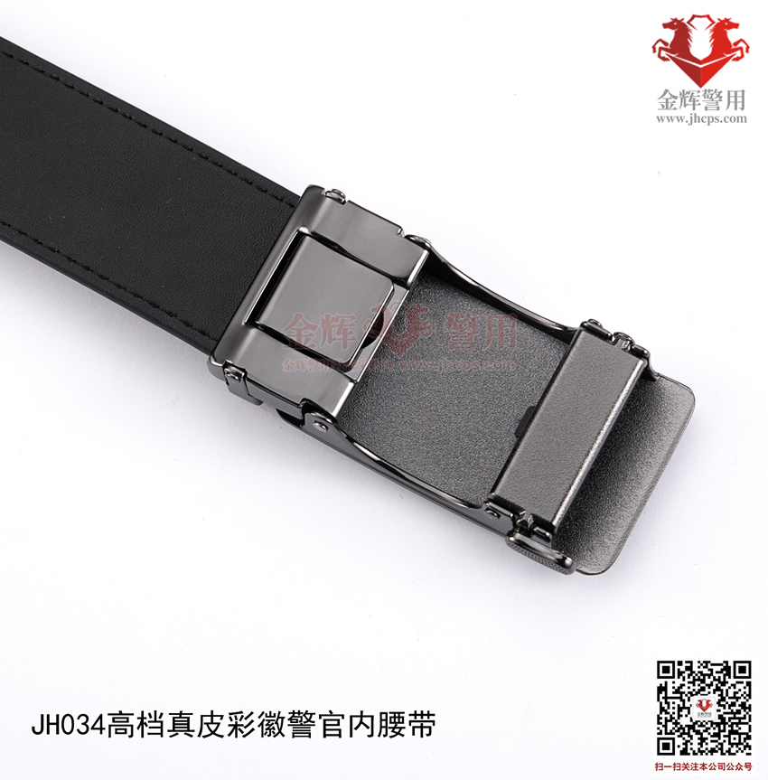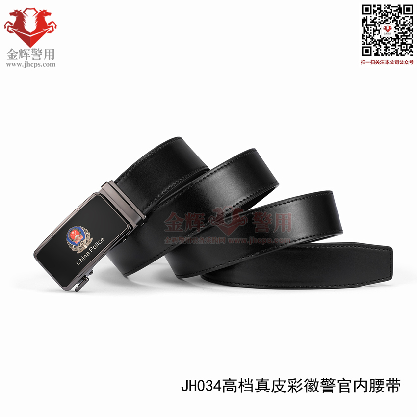 名稱:JH034高檔警官自動扣內腰帶 帶頭(tóu)材料:精致合金頭,不掉色(sè),不發舊,耐磨損工藝,警徽精雕圖(tú)案精致美觀。 帶身材料:頭層牛皮 長度:110-130厘米 固定(dìng)方式:自動扣
