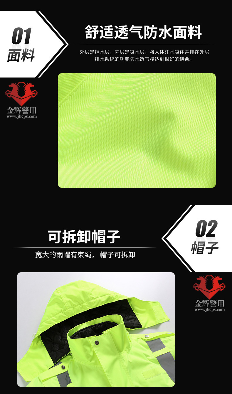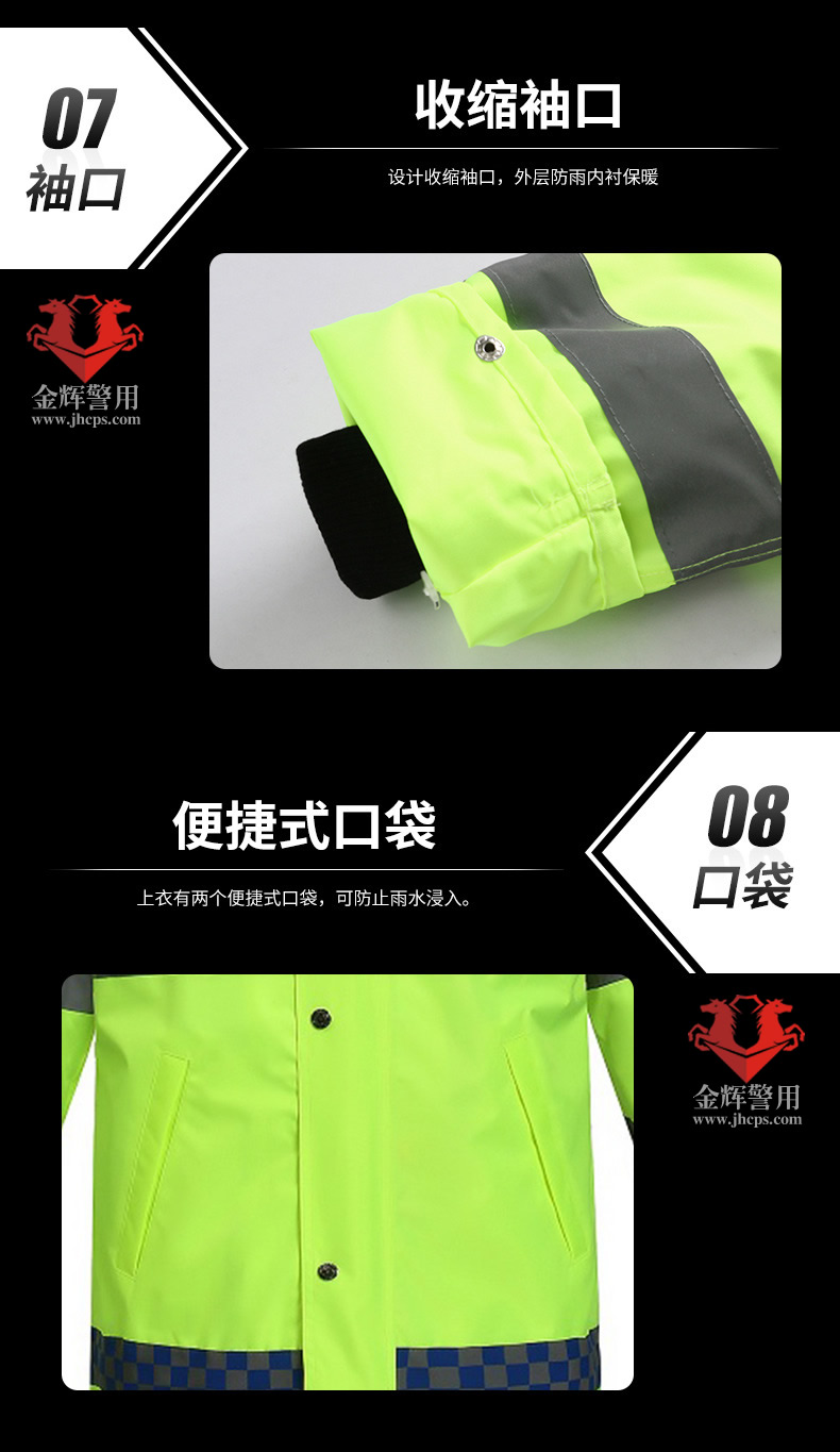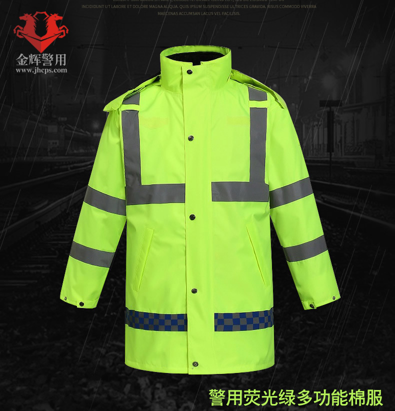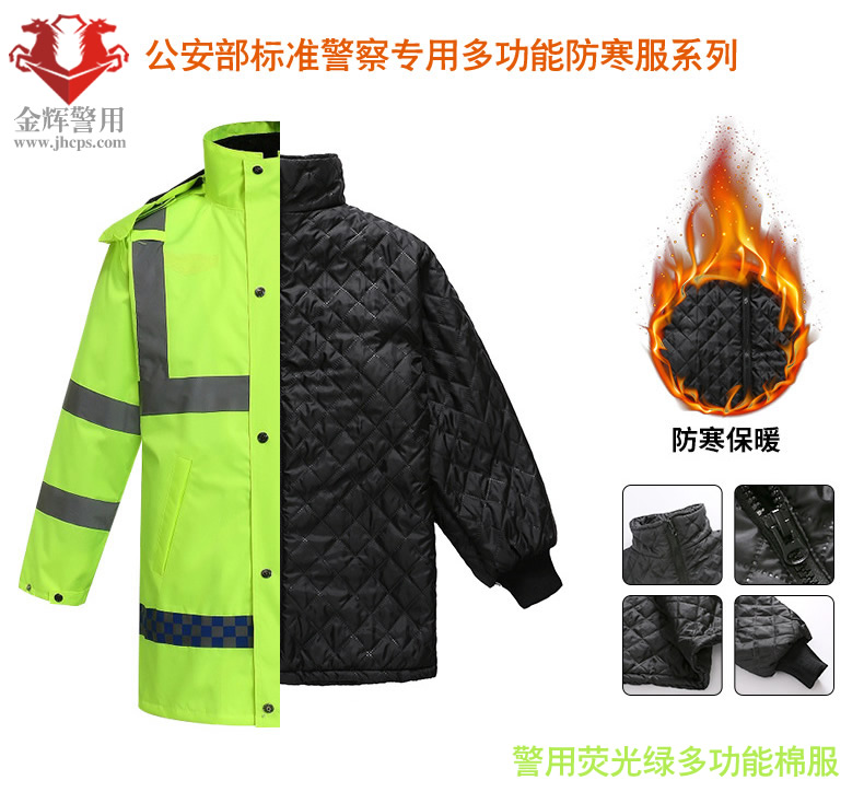警用多功能熒光綠棉大衣(yī) 交警戶(hù)外執勤多功能反光服 POLICE防護雨衣防寒大衣