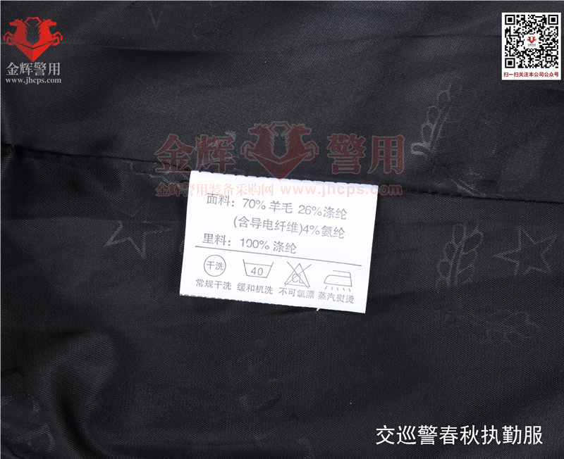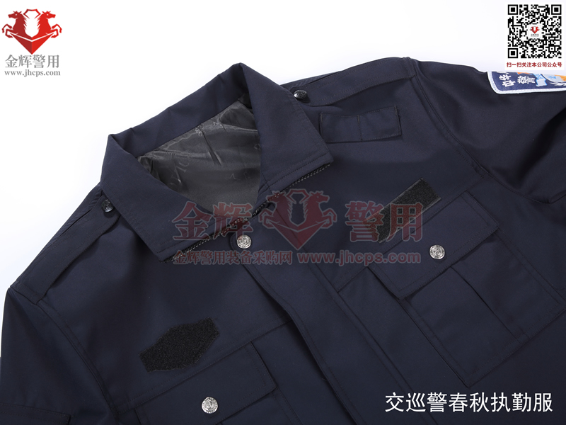 新款現役交巡警春秋執勤服,交警春秋夾克,交通(tōng)警察春秋夾克,交巡警帶袢式春秋執勤服采用優質(zhì)毛料,交警款製服最大特點是側邊口(kǒu)袋取消,腰圍(wéi)調節腰部(bù)增(zēng)加掛耳,方(fāng)便穿(chuān)戴武裝腰帶或者執勤外腰帶。