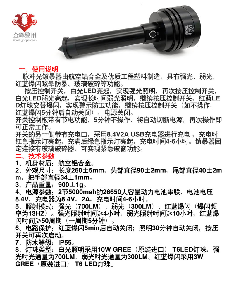 脈(mò)衝光鎮暴器由航空鋁合金及優質工程塑料製造,具有強光(guāng)、弱(ruò)光、紅藍爆閃眩暈防暴、玻璃破碎等功能。