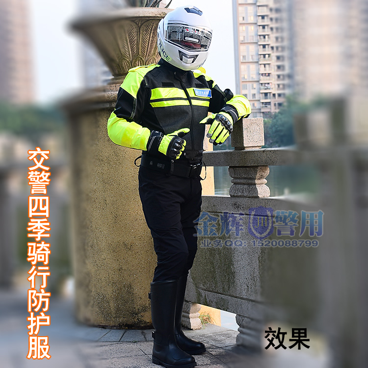 新款警用摩托車騎行服春秋冬(dōng)四季合適(shì)。本款包含上衣,褲子,腰帶,褲子,手套(tào),詳細產品實物請看下圖。
