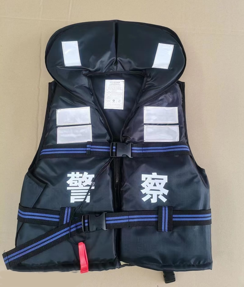 警用救生衣,適合水上公安日常執法執勤巡邏,或(huò)者防洪時候穿著。警用救生衣是警用(yòng)裝備中日常必備裝備(bèi)。本(běn)款產品浮力大於等於15公斤,可以承重300斤的體(tǐ)重,帶護脖,可以有效(xiào)的加強頭部浮力。顏色(sè)為藏青色,多個反光條,前麵反光警察字,後麵(miàn)POLICE反光字,有檢測報告,文字可定製。
