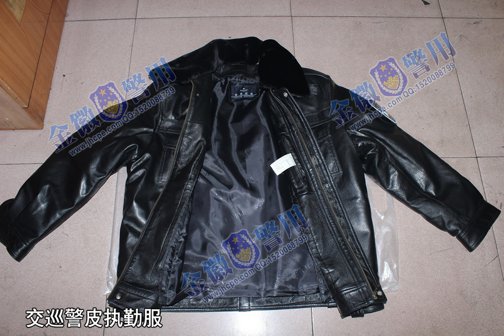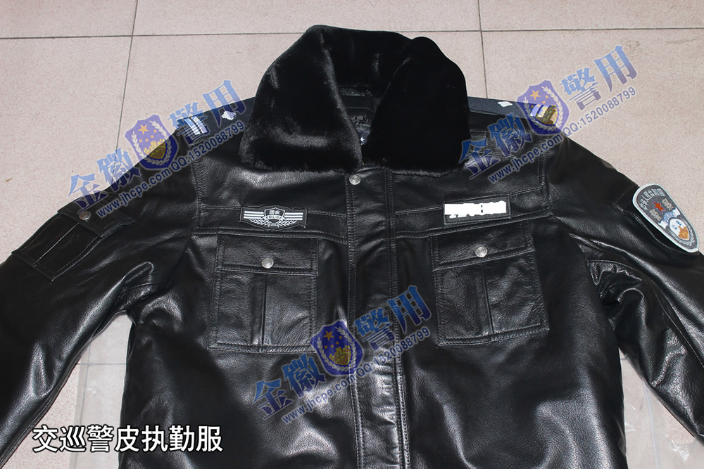 交巡警帶袢式執勤皮衣 交通警(jǐng)察皮執勤服(fú) 交警(jǐng)皮夾克 保暖羊皮警服 哪裏定做警用皮衣 正品警察皮衣定製