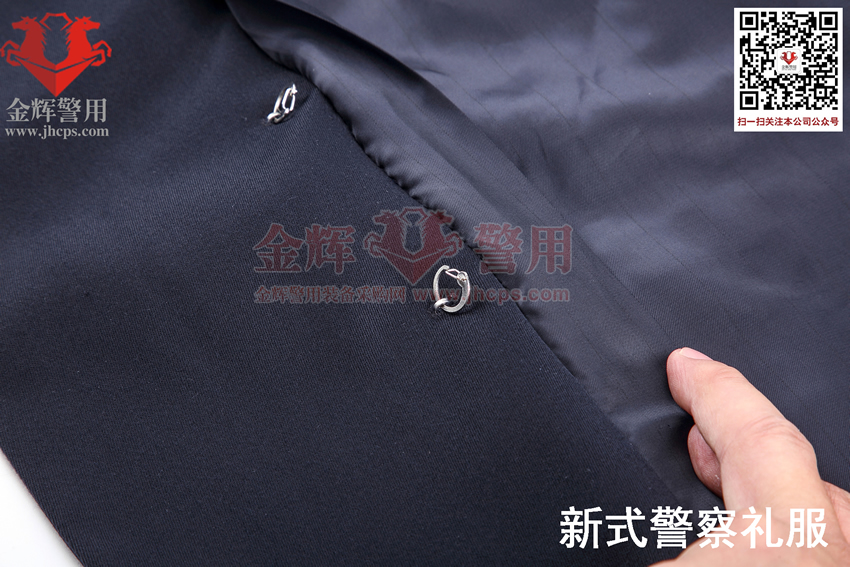 警察禮服上衣和褲(kù)子裏料: 55%滌綸(lún)纖維,45%粘纖。