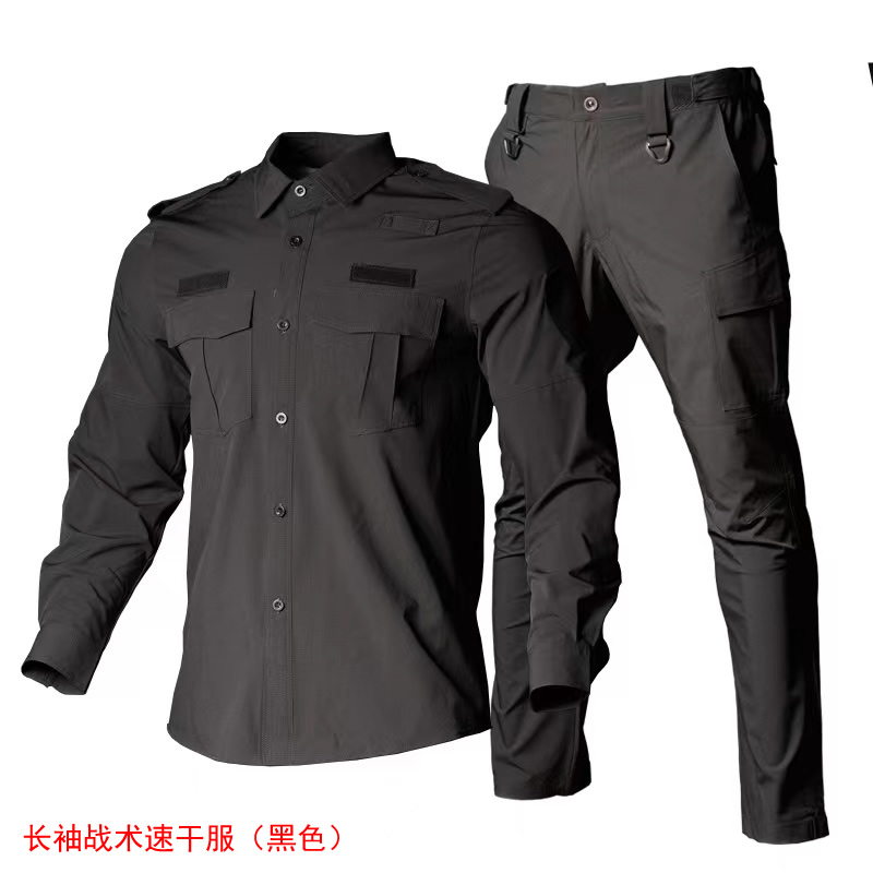 新款(kuǎn)夏季多功能特戰速幹服,適合(hé)公(gōng)安特警,教官等用途。可選短袖款和長袖款,長袖款適合夏季防曬和春秋穿著,服裝(zhuāng)上身(shēn)合體修身美觀。彈力透氣(qì),是新一帶特警隊員(yuán)必備服裝。本款產品可選黑色和藏(cáng)藍色。