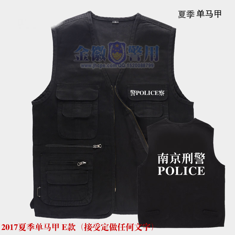 2017新(xīn)版(bǎn)刑警單馬甲,夏季款式,適合公(gōng)安警務人員便裝穿著,也可以作為警務工作馬甲,材料是純棉,型號XL、XXL、XXXL、XXXXL,馬甲需要定做,圖案為高溫燙印花。
