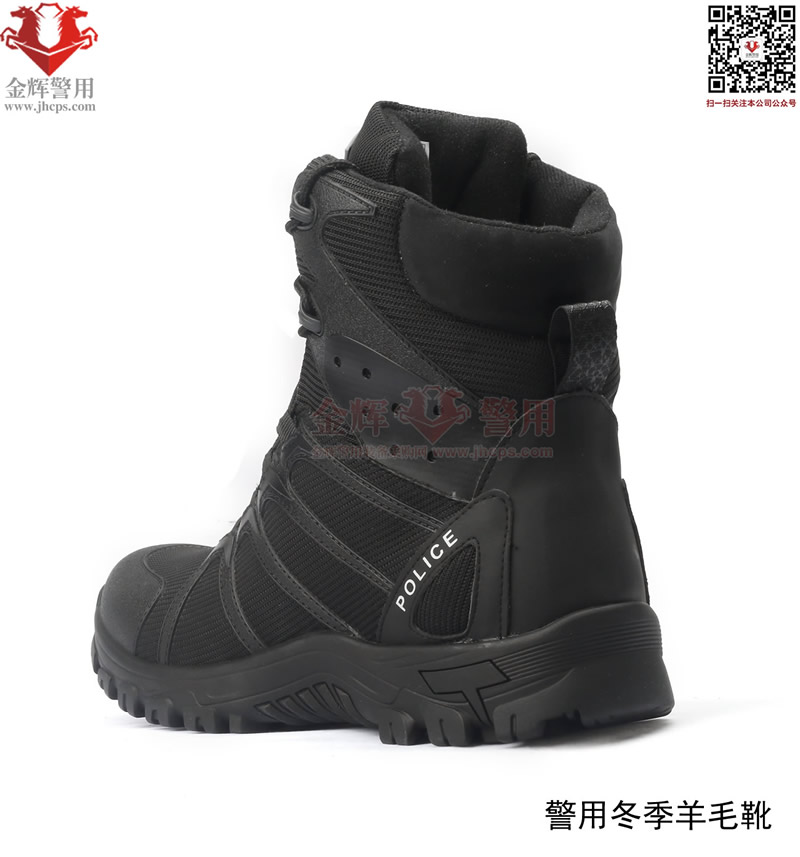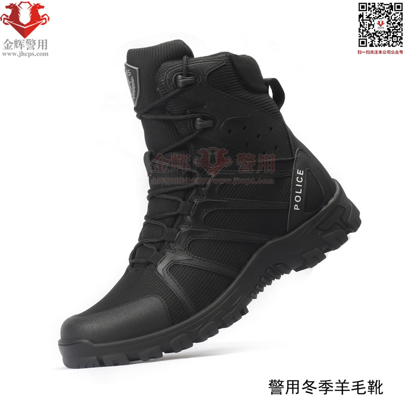 警用羊毛作戰靴,鞋麵采用KPU塑膠+牛津布,耐磨防滑橡膠大底,皮鞋正碼,純羊毛絨內裏,穿著非常暖和,步(bù)行舒適(shì),適合(hé)公安(ān)民警戰術(shù)執勤或者特警冬季訓練穿(chuān)著。更多優質產品歡迎關注本公司公眾號或(huò)者官(guān)網。