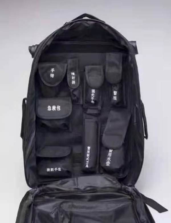 警用裝備包又稱警用多功能(néng)裝備包,警察裝備包,設計精巧美觀大方,且防水、阻燃、耐磨,分多層結構,主要用於放置公(gōng)安單警裝備的防割手套,警用急救包,強光手電,警用水壺,多功能腰帶,警用防刺服(fú)等十多種單警裝備,外部印有“警(jǐng)察POLICE”及警用裝備包標(biāo)誌,整個包為背帶式,可手提,便於攜帶出警巡視. 一、警用裝備包的具體參數: (1)用途:此包主要用於將單(dān)警裝備集中(zhōng)歸(guī)放,方便出警。 (2)主要存放裝備:①警服 ②防刺服 ③多功能腰帶 ④手銬 ⑤急救包 ⑥警棍 ⑦強光手電 ⑧警用水壺 ⑨催淚噴射器(qì) ⑩對講機(jī) 等。 (3)使用方式:①可雙肩背 ②可手提。 (4)內(nèi)層數:內設有三層(按說明書(shū)規定存放裝備)。 (5)材質:阻燃牛津麵料。 (6)功能 ①阻燃 ②防雨淋 ③防(fáng)塵 ④耐磨。 (7)尺寸:警用裝備包體(tǐ)積:56×39×18cm。 (8)質量:2.5kg。 二、警用裝備包使用說明及注意事項(xiàng): 1.平時(shí)存放在幹燥,通風處,不得暴(bào)曬,遠離化學(xué)品的侵蝕。 2.不(bú)得將(jiāng)得物和尖角物品壓在(zài)其(qí)上。 3.弄髒後,可用水加適量洗滌劑清洗,用清水衝幹淨,可以在太陽(yáng)下(xià)曬幹,不適合離心脫水,不得用燙鬥燙,火烤。