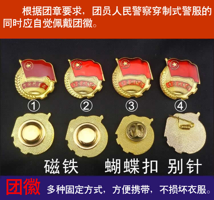 警服佩戴團徽 團員標誌 公(gōng)安警察別(bié)針團(tuán)徽 警用磁扣團徽 左胸徽佩戴警察團徽