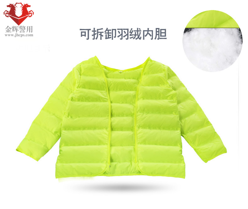 顏色:熒光黃 麵料:防水桃皮(pí)絨 尺(chǐ)寸:M,L,XL,XXL,XXXL 內膽:加厚羽絨 含衝量140克