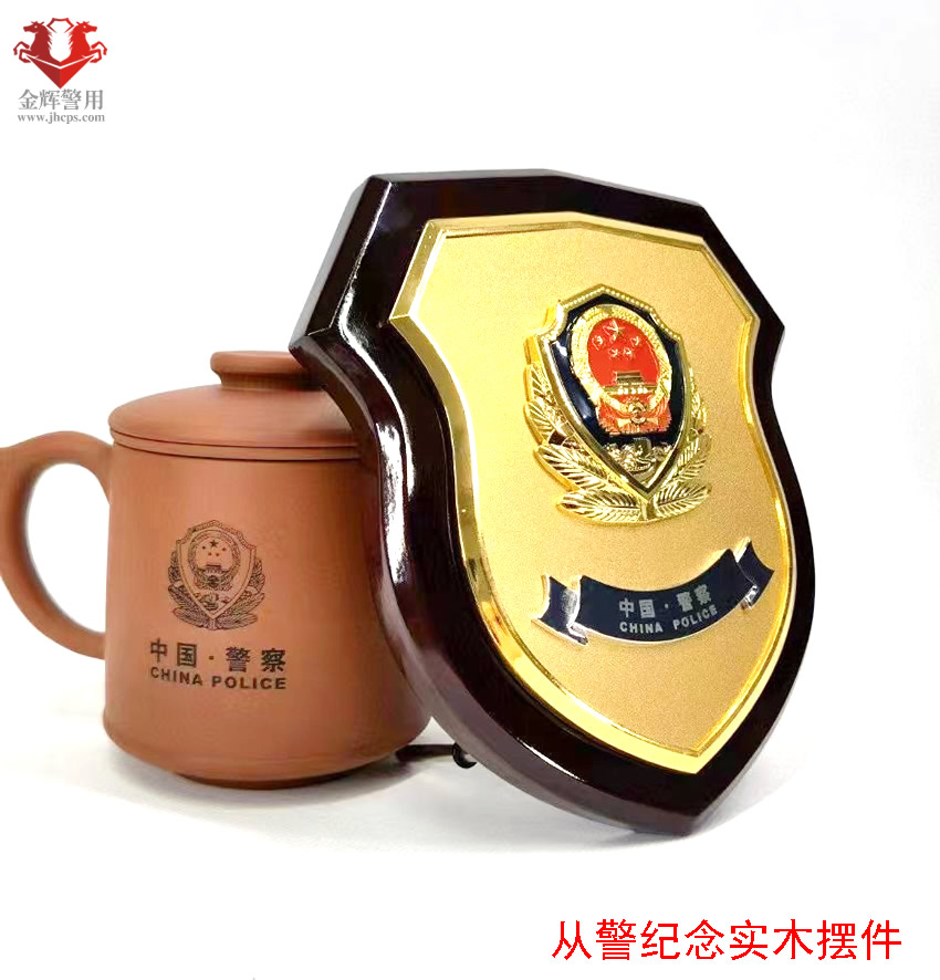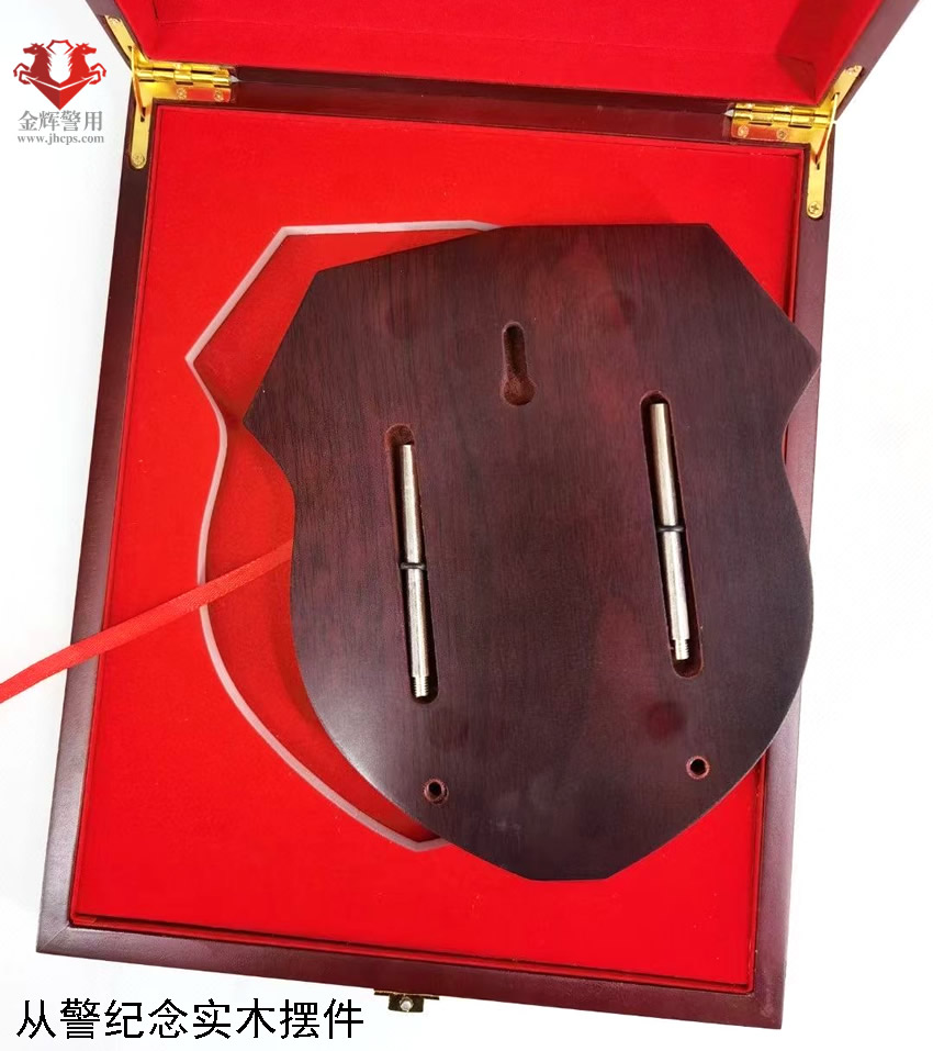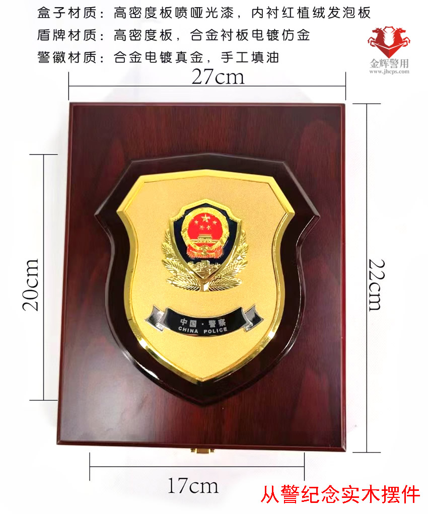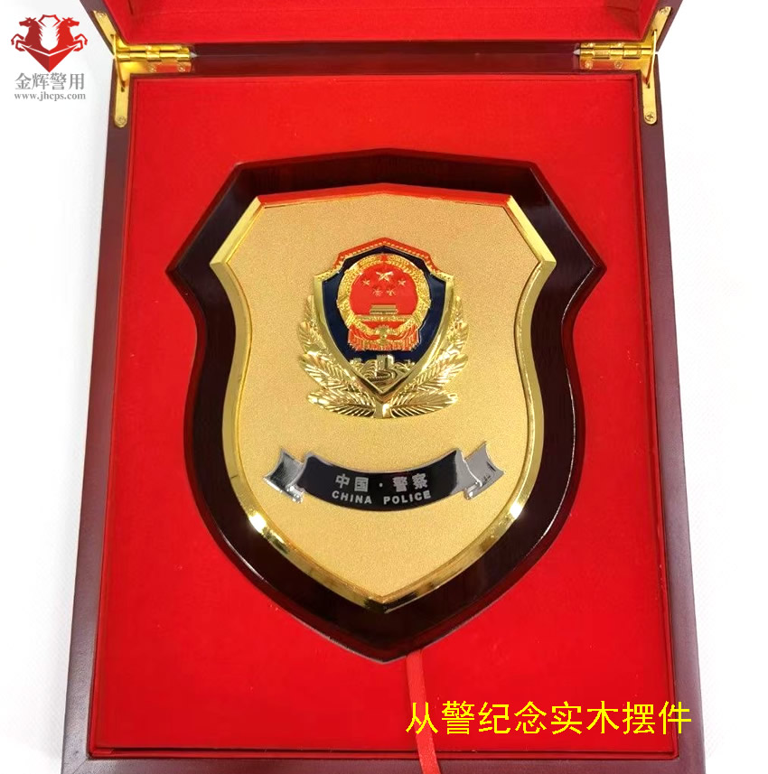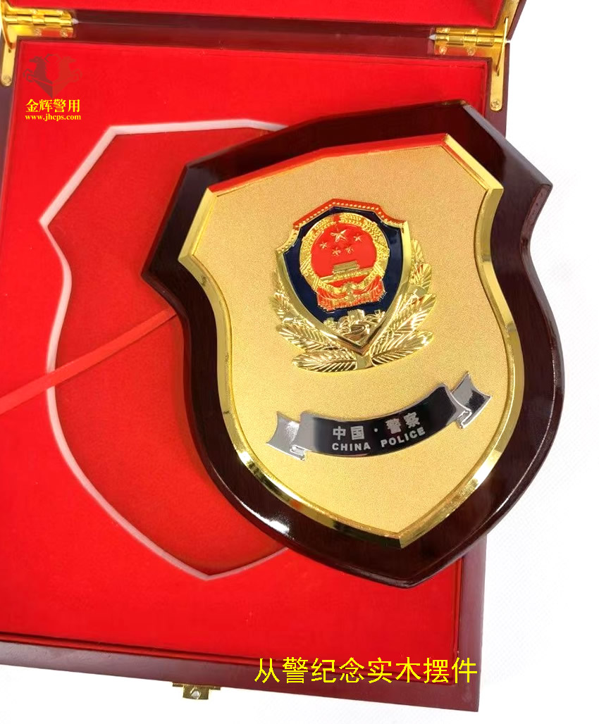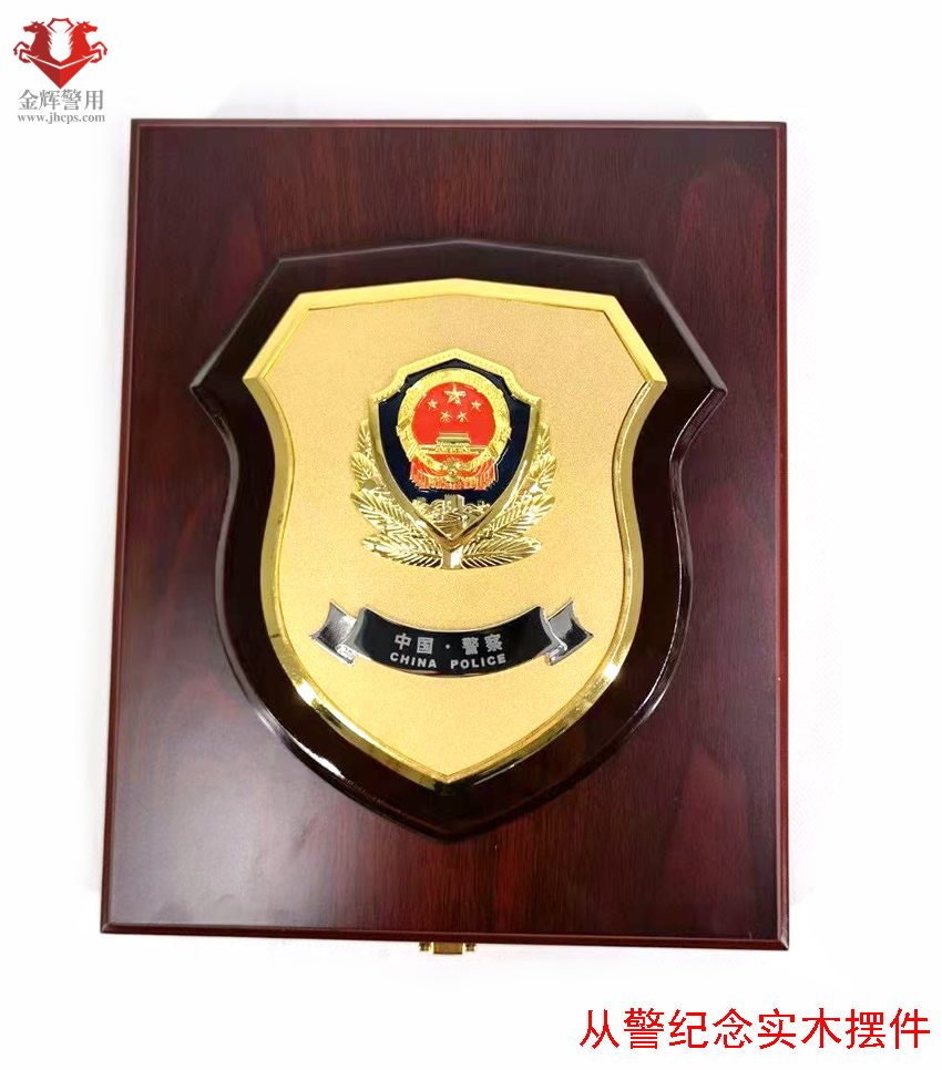 公安實木文化牌,盾牌設計風格,金屬警徽嵌入,設計和做工美觀精致。