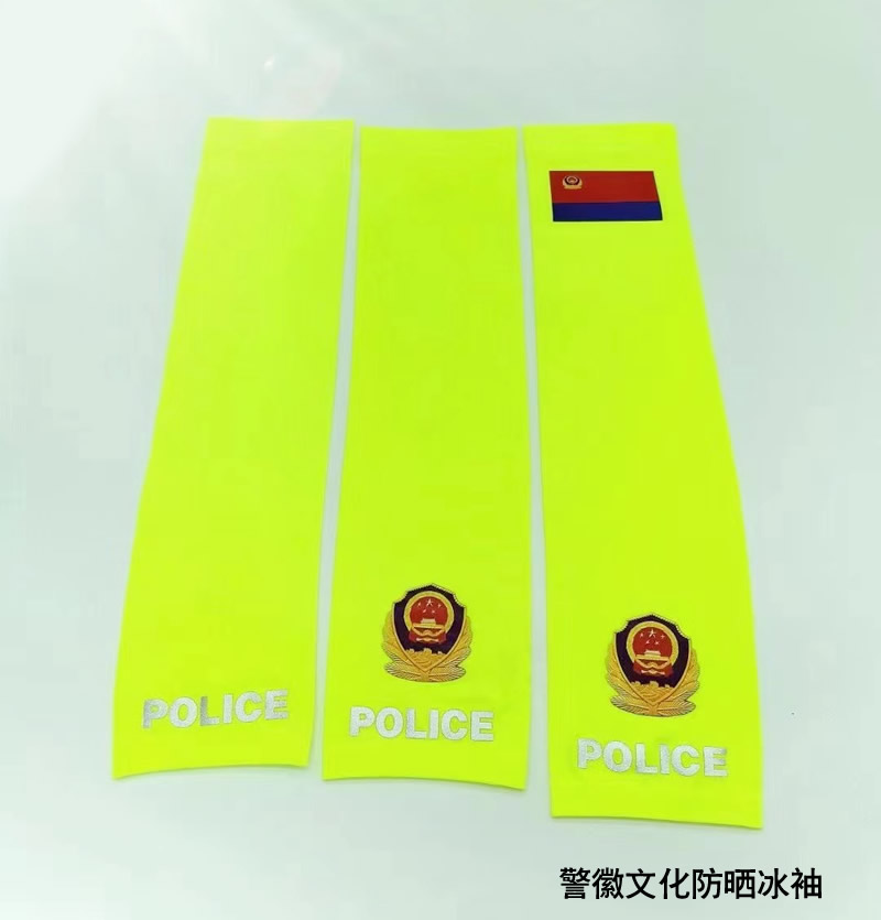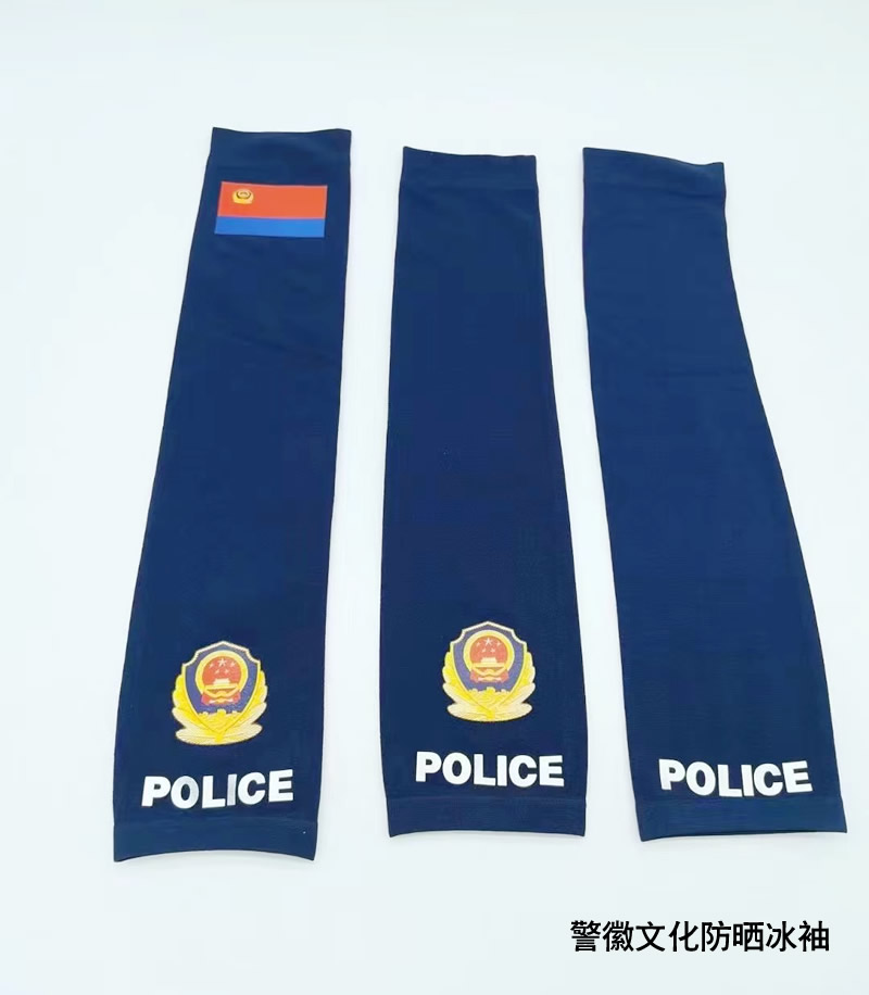 警用防曬冰袖,交警執勤防(fáng)曬護袖,警察福(fú)利產品,可根據單位需求定製反光(guāng)文字,多種顏色可選。