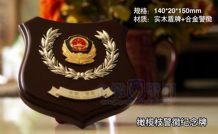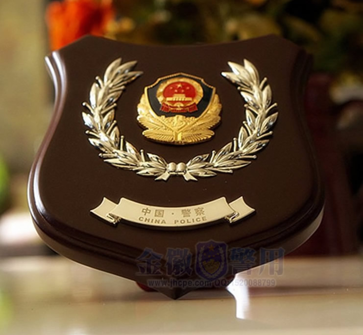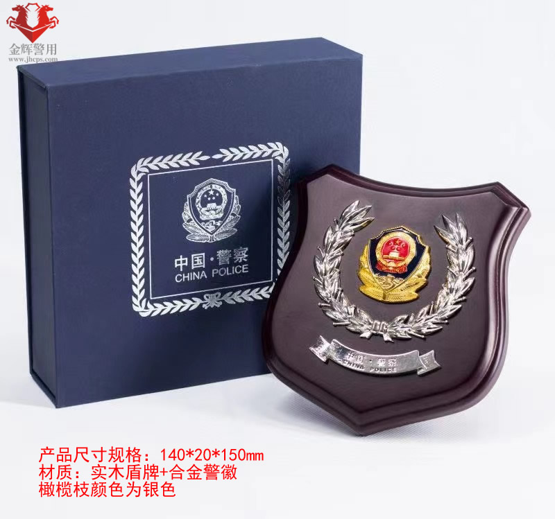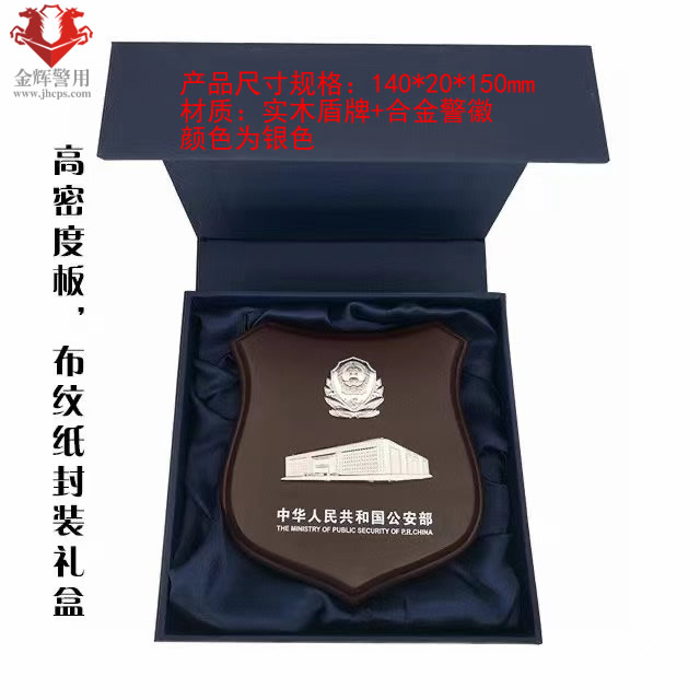 規(guī)格:140*20*150mm 材質:實木盾(dùn)牌+合金警徽
