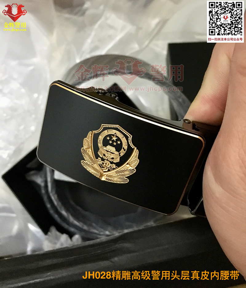 JH028高級警官(guān)金色內腰(yāo)帶,警(jǐng)察紀念內腰帶,高級警官專用腰帶,精雕(diāo)警徽皮帶,黃金色警徽頭,頭層牛皮