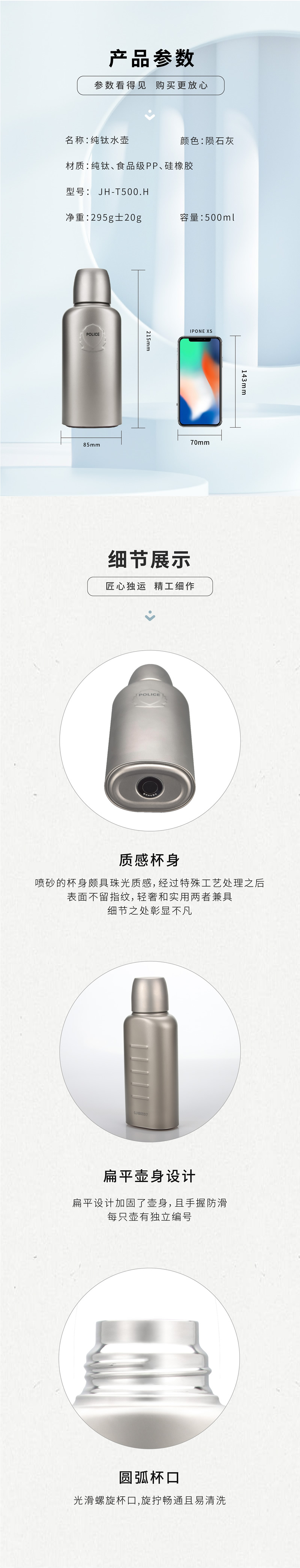 高檔警用純(chún)鈦執勤水壺,警察扁水壺