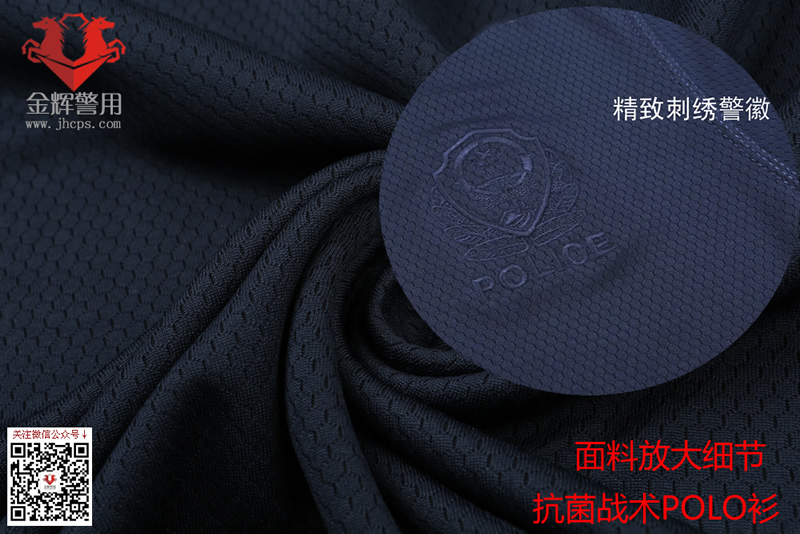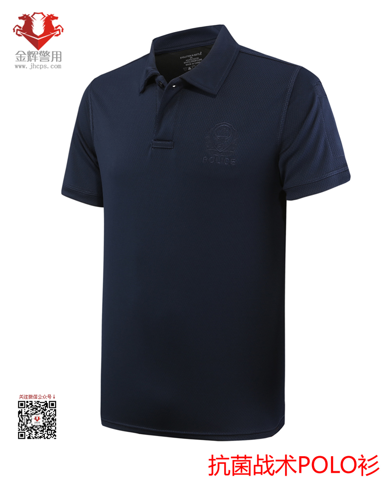 速幹防(fáng)臭警察戰術POLO衫,深色刺繡大警徽抗菌T恤,新型警服短袖訓練T恤