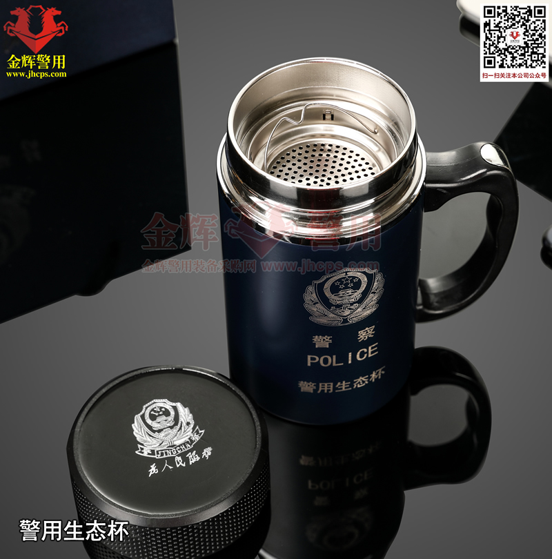 高檔警察配發茶杯 正品警用水杯 不鏽鋼紫砂內膽公安警徽水杯 警用保溫水杯