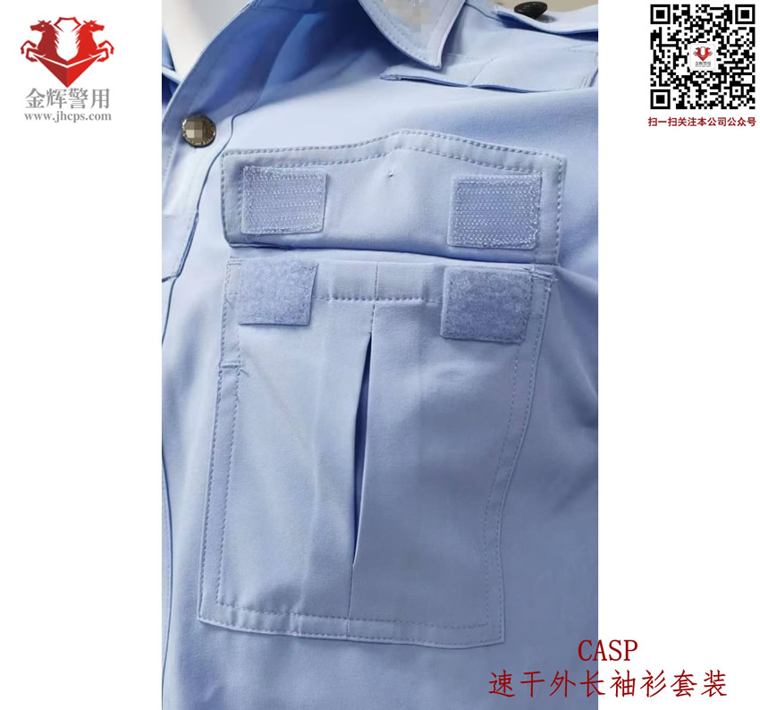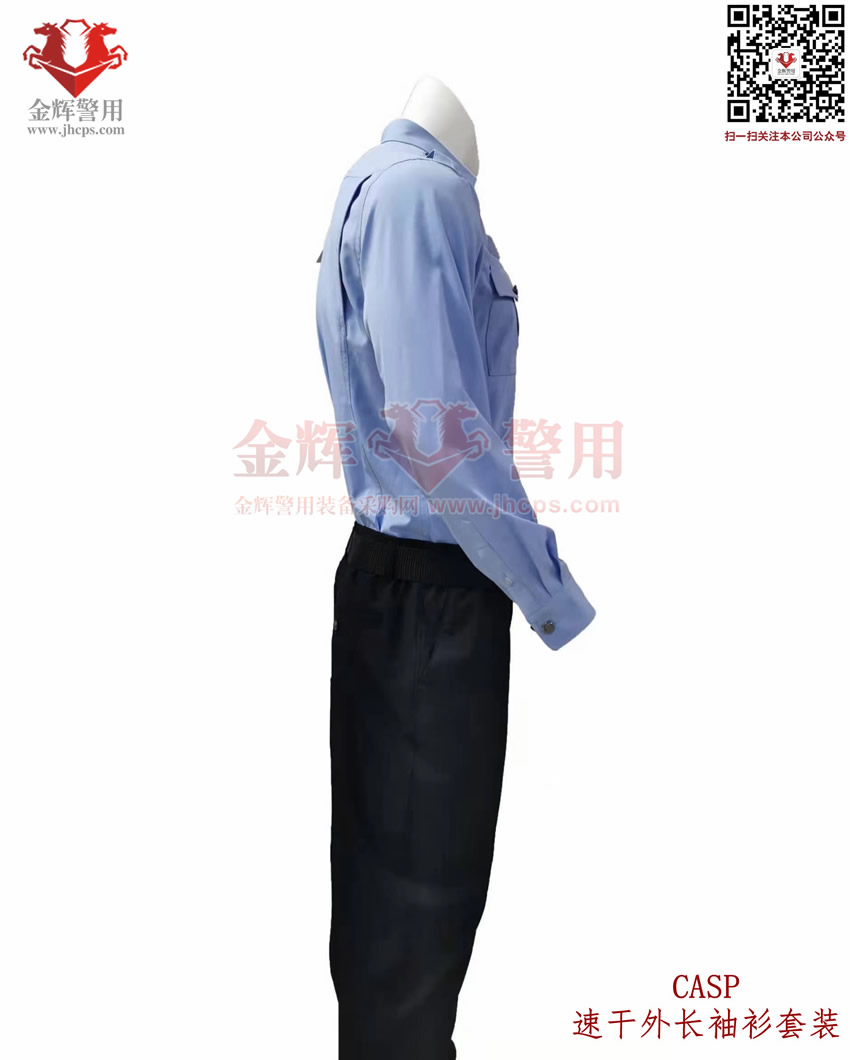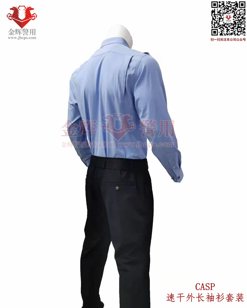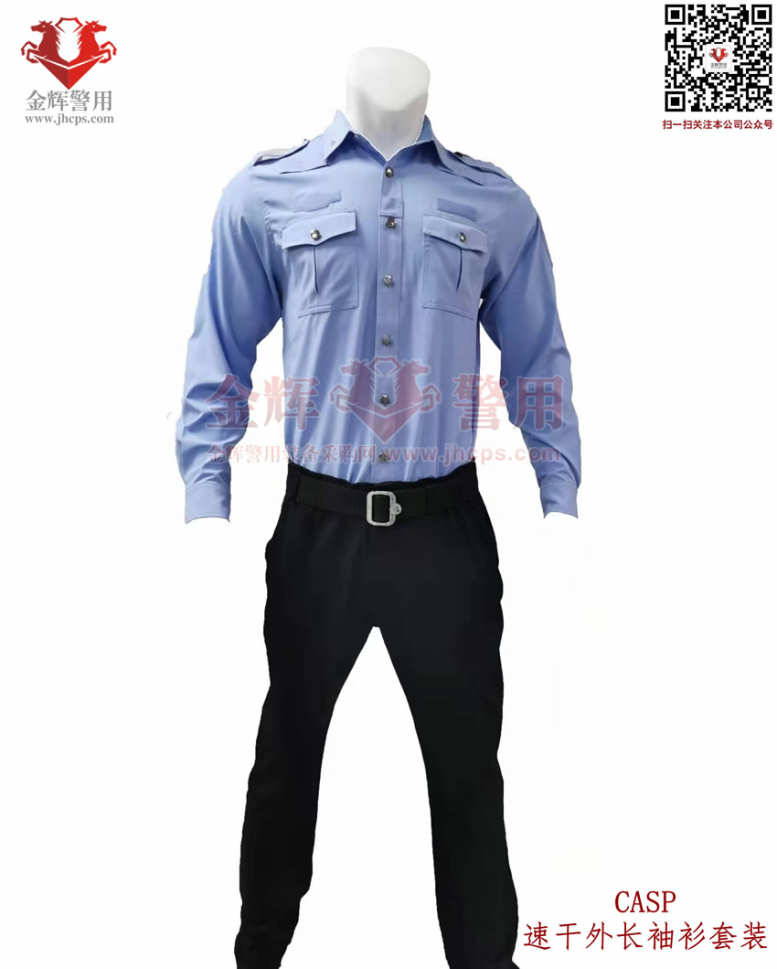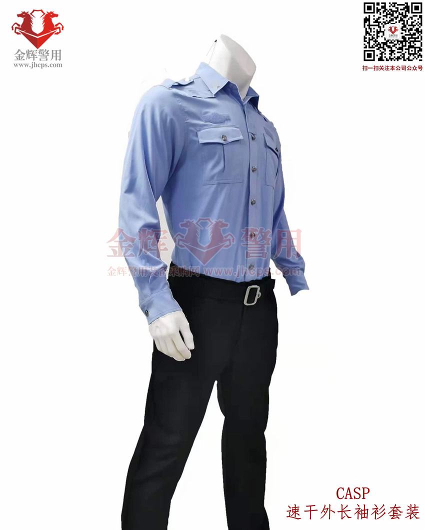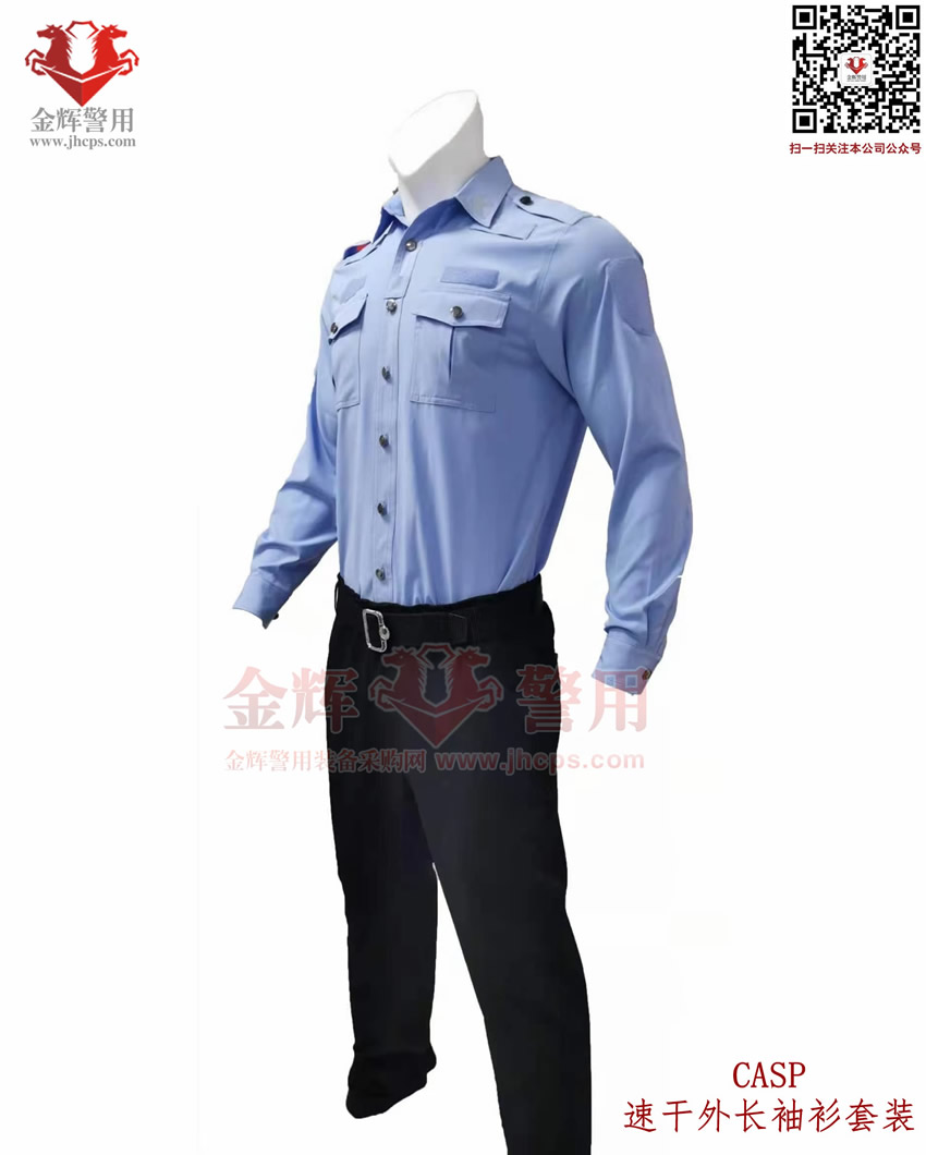 新式警服外長袖衫,港版(bǎn)修身警用執勤襯衣套裝(zhuāng),CASP港版新式外長袖衫套裝,港版(bǎn)修(xiū)身係列。上衣和褲子材料為(wéi)彈力透氣麵料,天藍色上(shàng)衣(yī),黑色速幹西褲,具備修身效果,穿著舒適跨度完美,具備透氣快感,戰術執勤執法穿著均(jun1)合適。魔術貼臂章(zhāng)設計,完美配合現役配飾,符合製式配置。