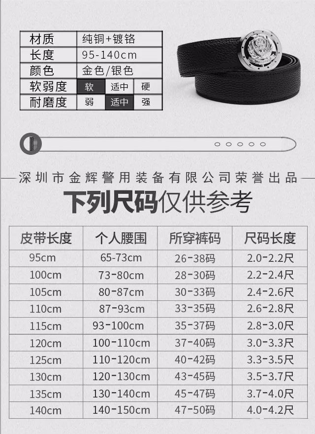 新式公安頭層牛皮荔枝紋警察圓(yuán)頭純銅腰帶,高檔警務(wù)禮(lǐ)盒包裝,款式精致美觀,可選金色(sè)腰帶(dài)頭和銀色腰帶(dài)頭,純銅材料,精致美觀。