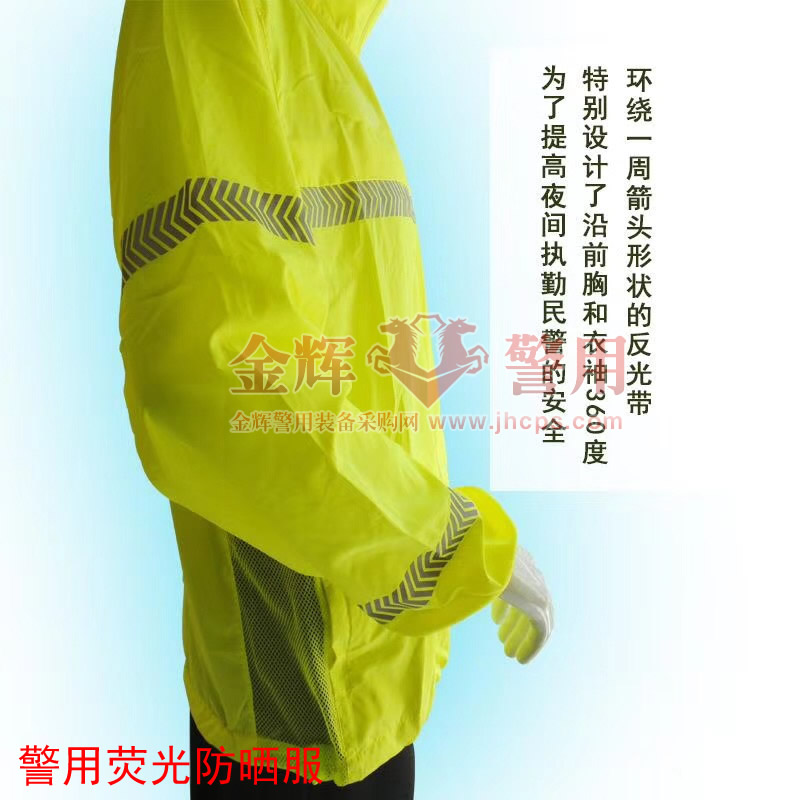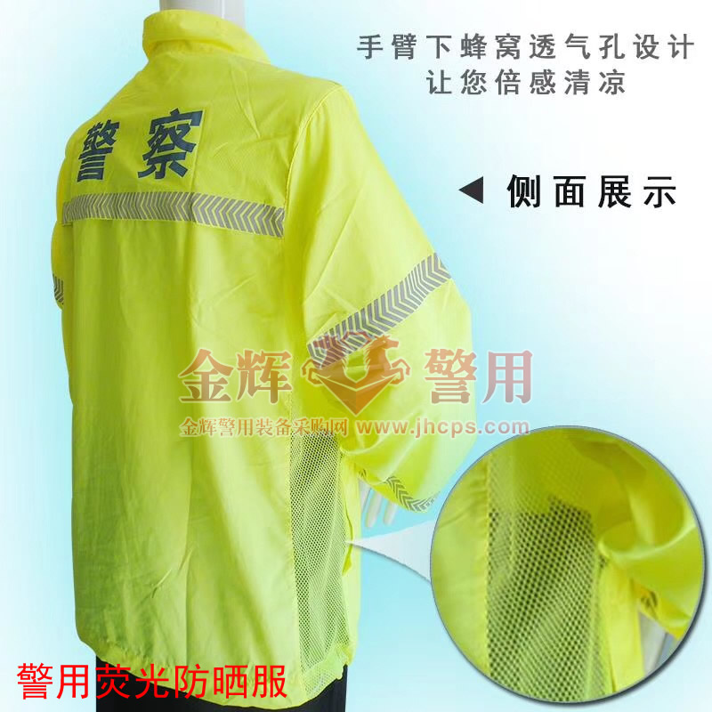 警用熒光防曬服防紫外線防曬.排汗透氣.輕柔舒爽.強力速(sù)幹,立領設計適合交警(jǐng)戶外執勤或(huò)者警察防曬用(yòng)途(tú)。