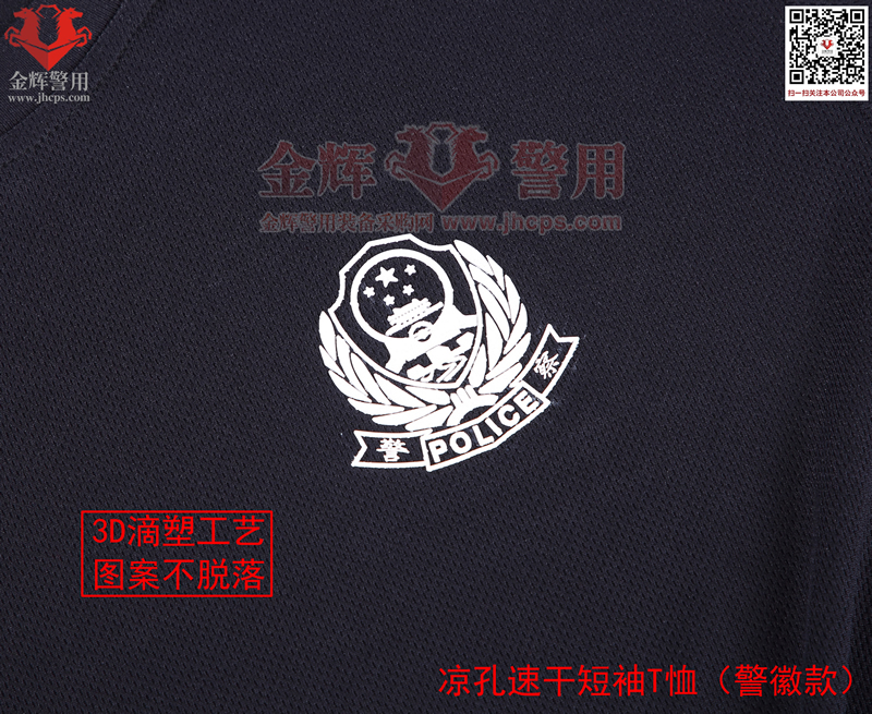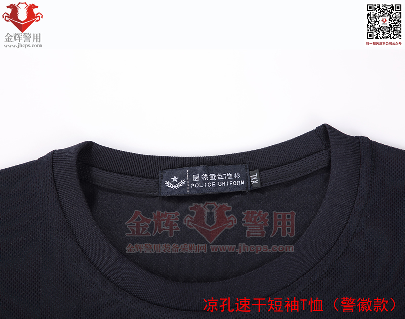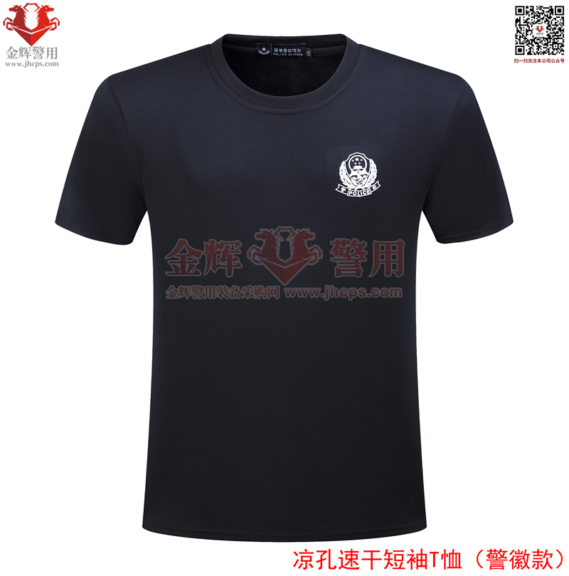 警察速幹冰絲T恤,短袖藏(cáng)青藏藍警用短(duǎn)袖,圓領,速幹體能警用短袖 圓領蠶絲涼孔速幹警徽T恤 正品配發警察體能訓練套裝