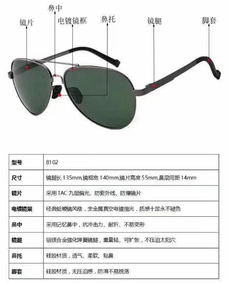 材質:鋁(lǚ)鎂(měi)合(hé)金記憶金屬鏡框TAC偏光鏡片