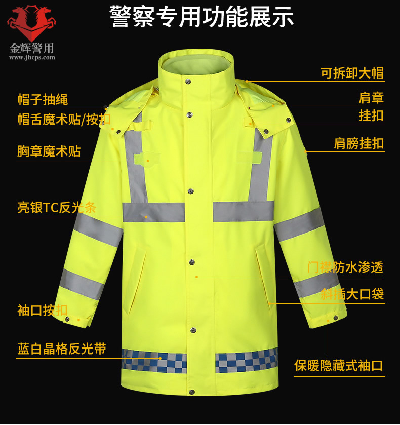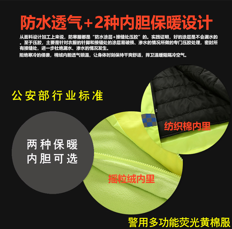 警用熒光黃多功能棉服
