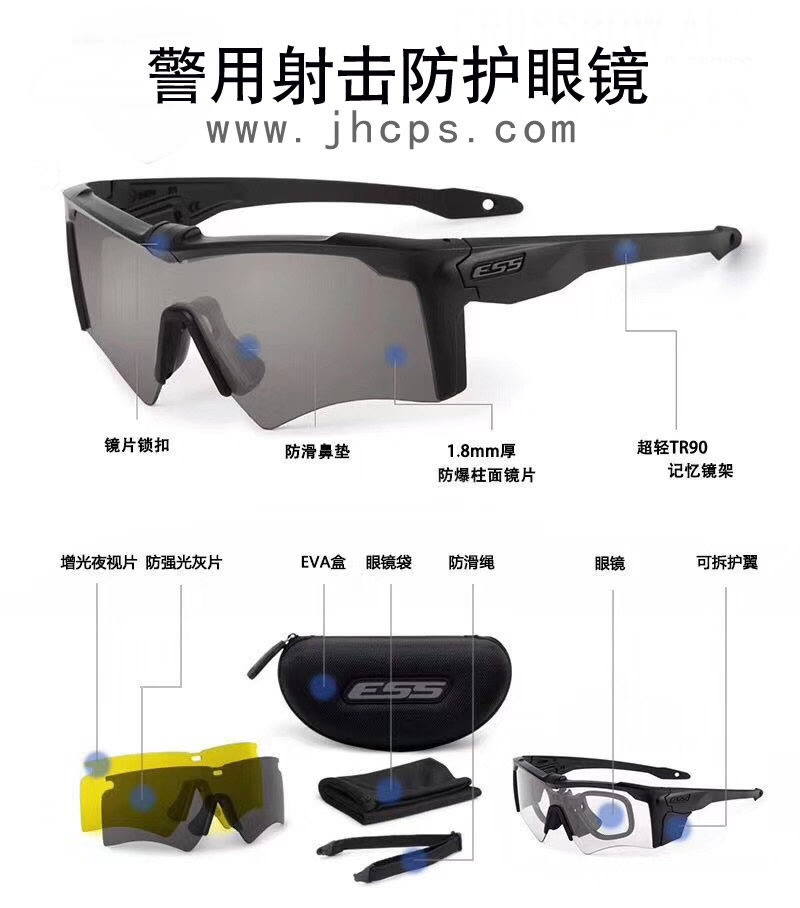 ESS警用射擊防護眼(yǎn)鏡主要(yào)作用是(shì)實彈射(shè)擊訓練的時候佩戴(dài)可以有效防止槍支彈片(piàn)火光對眼睛造成的傷害,本款眼鏡配置了多種顏色鏡片,可以根據不同戰術環境更換,外貿出口產品美軍在用,質量可靠。新型射擊(jī)眼鏡非常適合我國公安一線幹警(jǐng)使用。