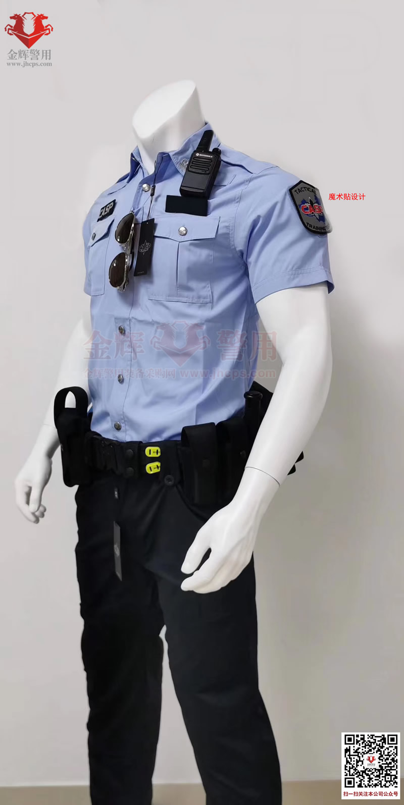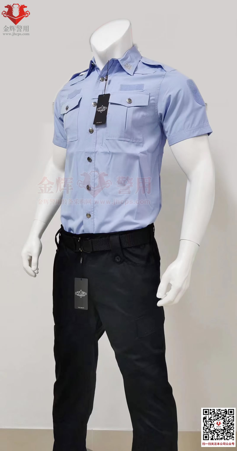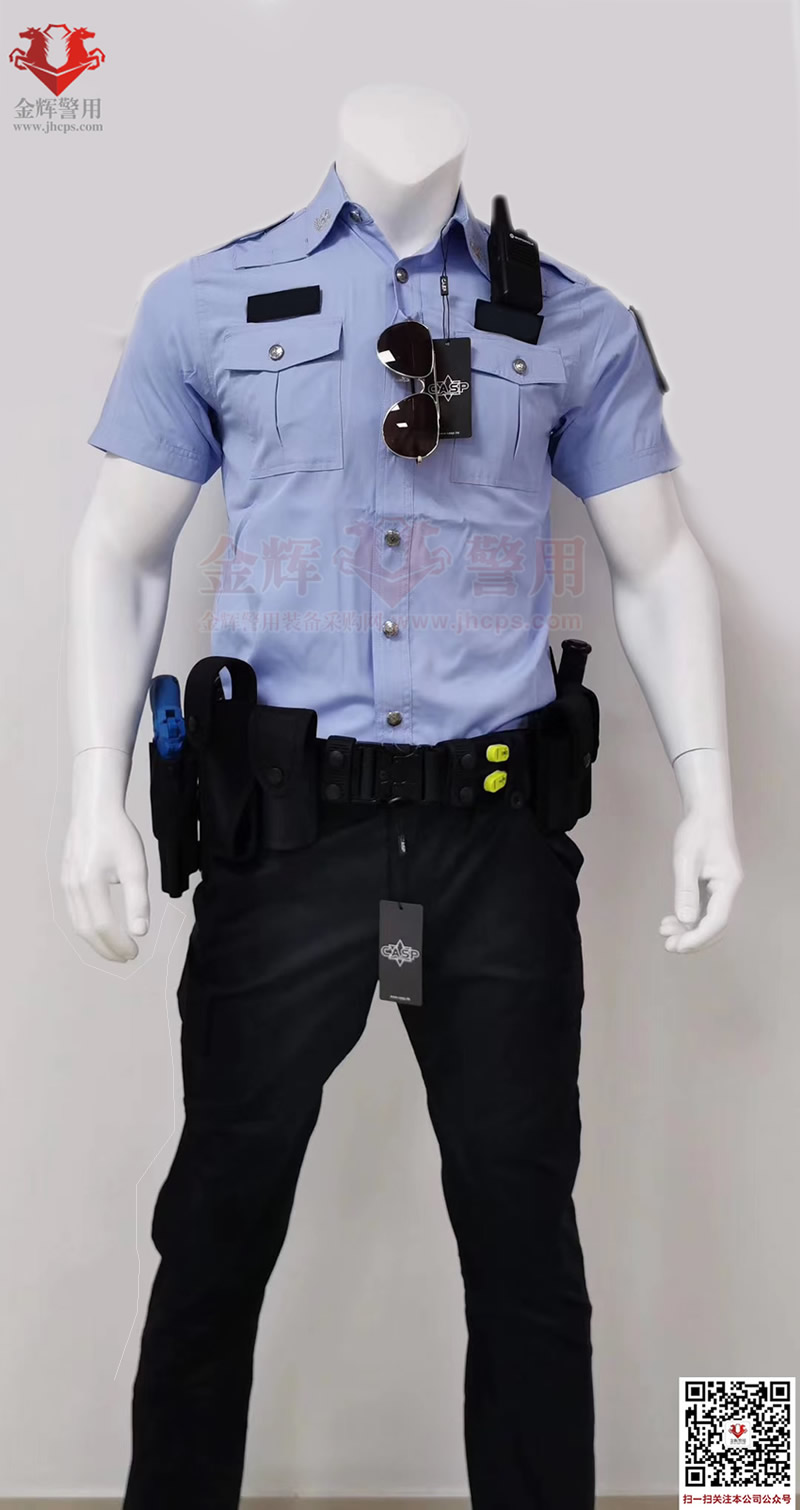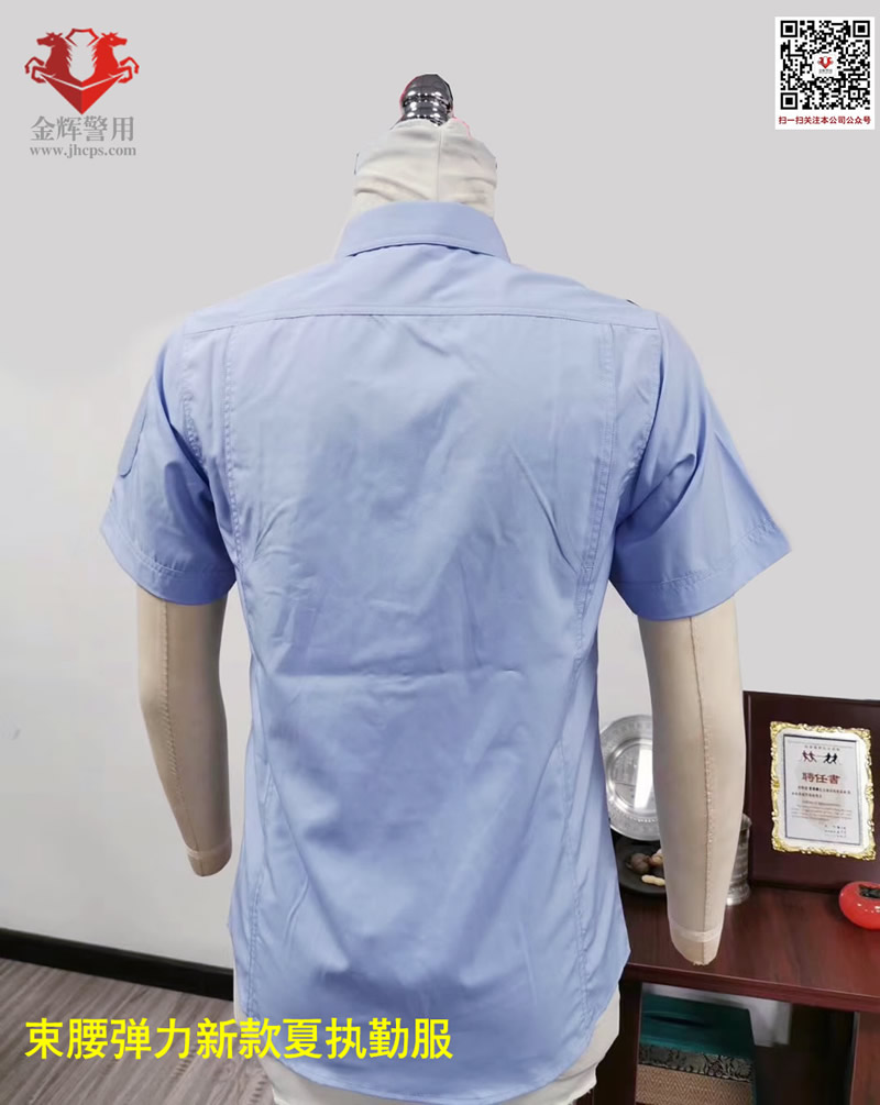 新式公安夏(xià)短袖警(jǐng)服,港版深圳修身夏執勤套裝警用製服,港版修身係列。上衣和褲子材(cái)料為彈力透氣麵(miàn)料,天藍色上衣,黑色褲子,束腰設計半袖修身,穿著(zhe)舒適跨度完(wán)美,具備透氣快感,戰術執勤執法穿(chuān)著均合適。魔術貼臂章設計,完美(měi)配合現役配飾(shì),符合製式配置。