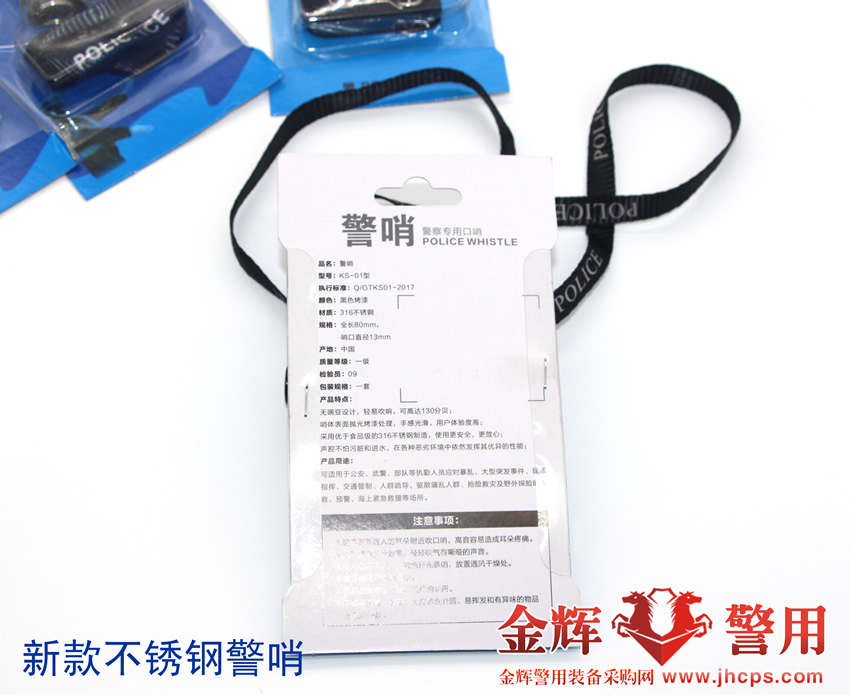 新款不(bú)鏽鋼警察黑色口哨,激光雕刻警徽交警(jǐng)專用口哨