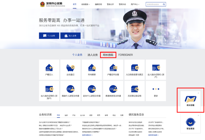 “局長信箱(xiāng),接訴即辦(bàn)”在深圳(zhèn)市公安局官方網站(zhàn)設立(lì)版塊,以彈窗、飄窗及根(gēn)目錄等形式呈現,方便群眾查找使用,同時“深圳公安”微信、微(wēi)博等新媒(méi)體平台也以菜單鏈(liàn)接方式,一鍵跳轉至“局長信箱,接訴即辦”版塊,群眾可實名登錄後在上述(shù)平台相關版塊反映問題、舉報投訴,公安機關會為來信人保守秘密。