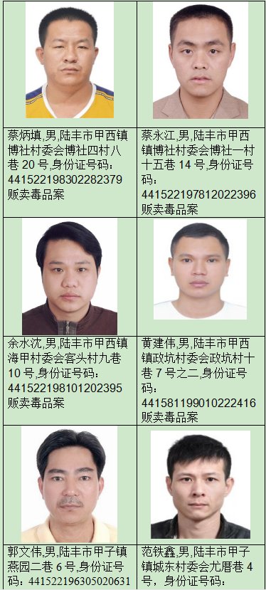 為進一步實現“清零”目標,現將僅剩的13名陸豐籍涉毒(dú)逃犯的情(qíng)況重新梳(shū)理發布,陸豐(fēng)公安希望(wàng)廣(guǎng)大人民群眾積極(jí)提供在逃犯罪嫌疑人線索,並對舉報人和協助公(gōng)安機關工作的人員(yuán)嚴格保密。其獎勵標準為:“舉報一名獎(jiǎng)勵80萬”。