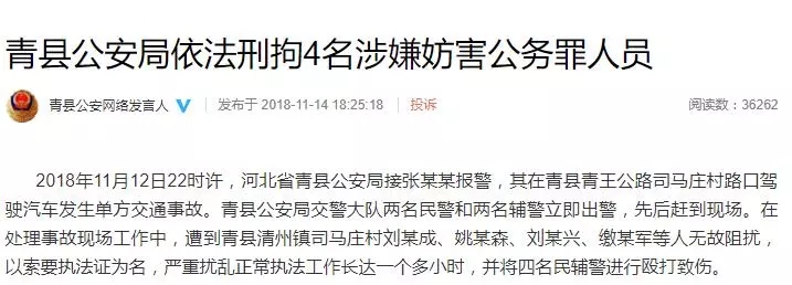 河(hé)北省(shěng)青縣公(gōng)安局輔警執勤被毆打情(qíng)況(kuàng)通報