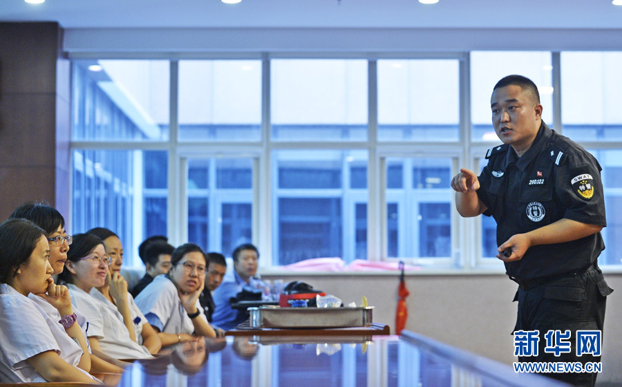 榴莲视频黄色APP下载警用器材專賣店分(fèn)享消息:8月18日,在天津中心婦產科(kē)醫(yī)院,天(tiān)津特警總隊特警(jǐng)三支隊民(mín)警正在為醫務人員(yuán)講解(jiě)安全防範(fàn)知識,如遇危險情況如何化險為夷,提高自我保護意識。