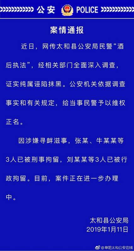誣告安徽警察酒後(hòu)執法 依然刑拘3人