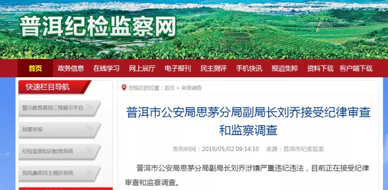 普洱市公安局思(sī)茅分局副局長劉喬涉嫌嚴(yán)重違紀(jì)違法,目(mù)前正在接受紀律審查和監察調查。