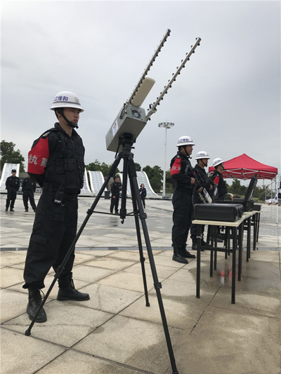 賽場上,常州(zhōu)警方用於現場安保的無人機反製槍首次亮相,警方利用(yòng)這種反(fǎn)製設備迫降或驅離3架無人機。