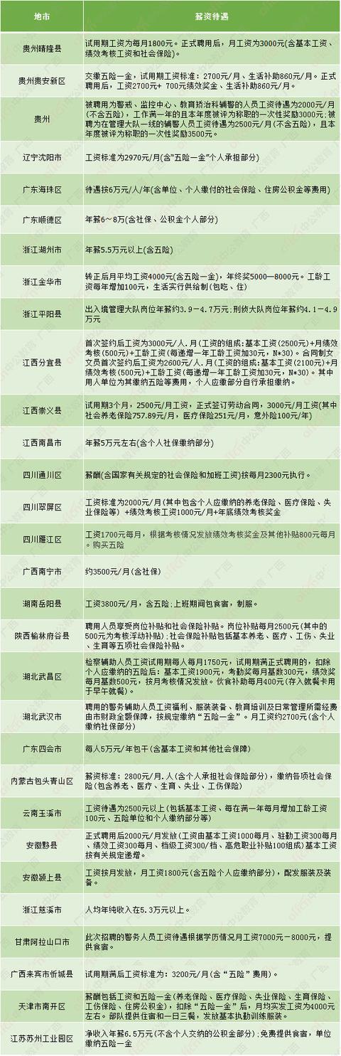一、全國各地輔警工資圖(數據(jù)來源網絡)