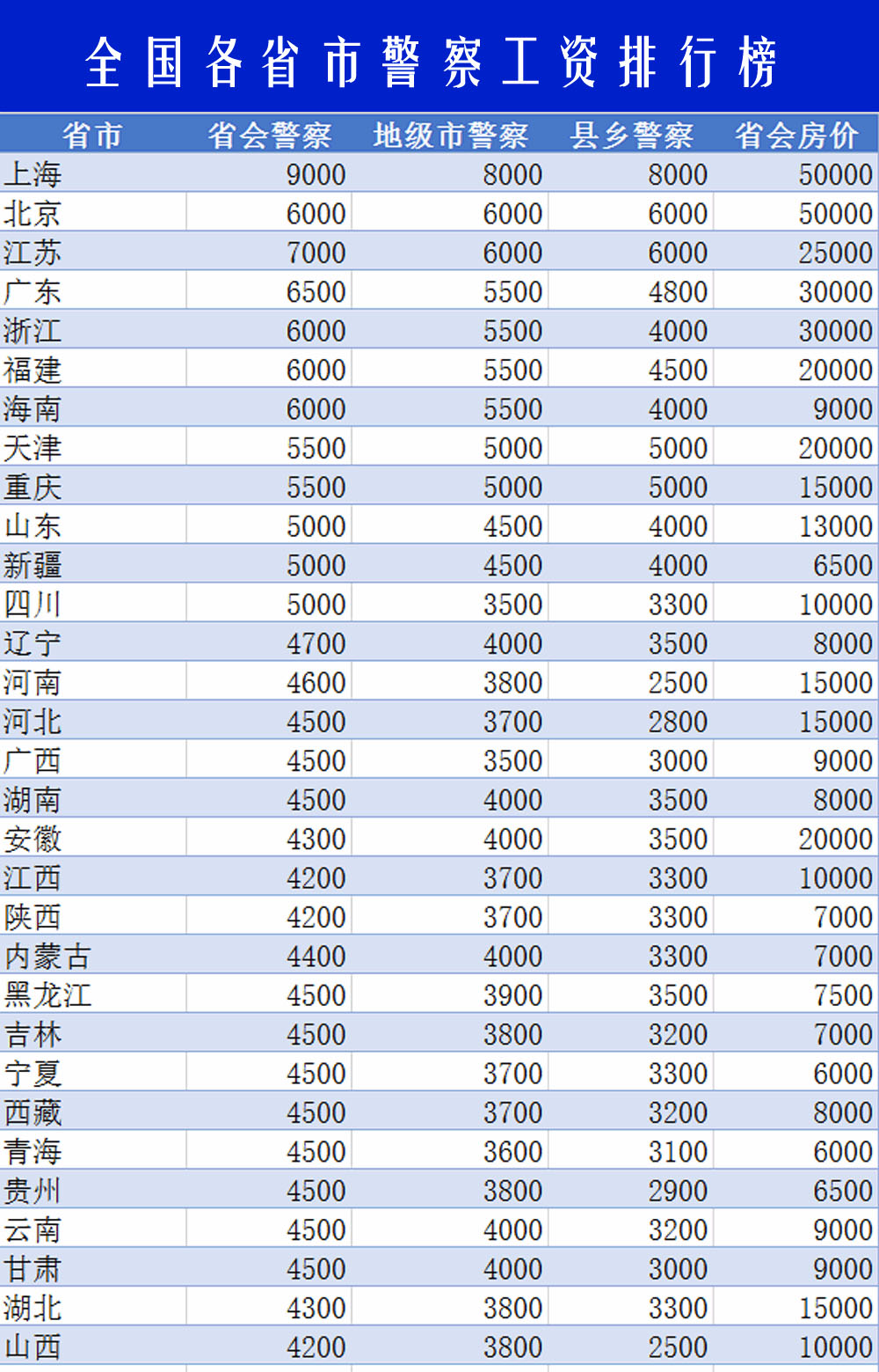 二、全國各地(dì)警察工資圖(數據來源網絡)