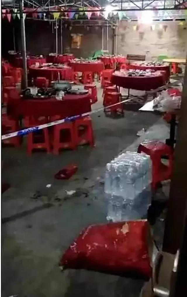 眼前的一幕嚇壞了現場(chǎng)賓客。慌亂中,梁某華的妻子向幾個女兒大聲哭喊道:“快顧好你們的孩子。”