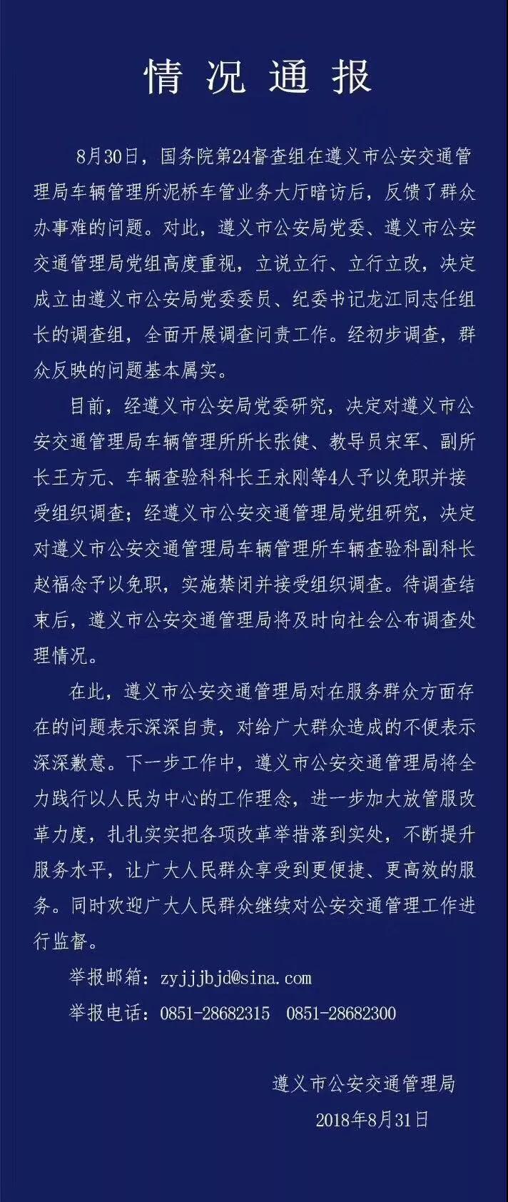 遵義市公安交通(tōng)管理局今天(31日)一早發布(bù)了對(duì)該事件的情況通報(bào),多人受到免職處理。